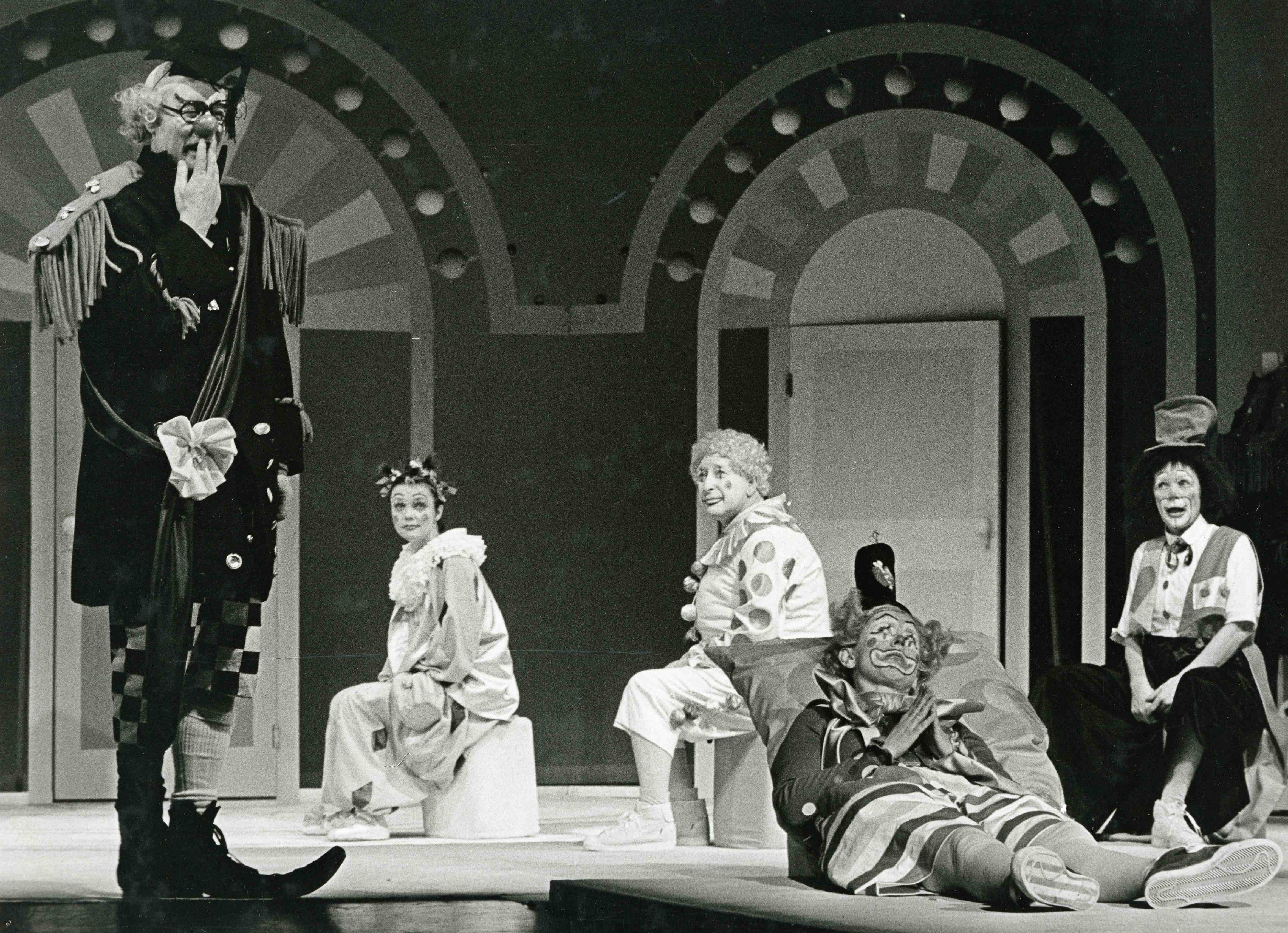 Fotografi fra Oslo Nye Teaters produksjon Klovneskolen (1980).