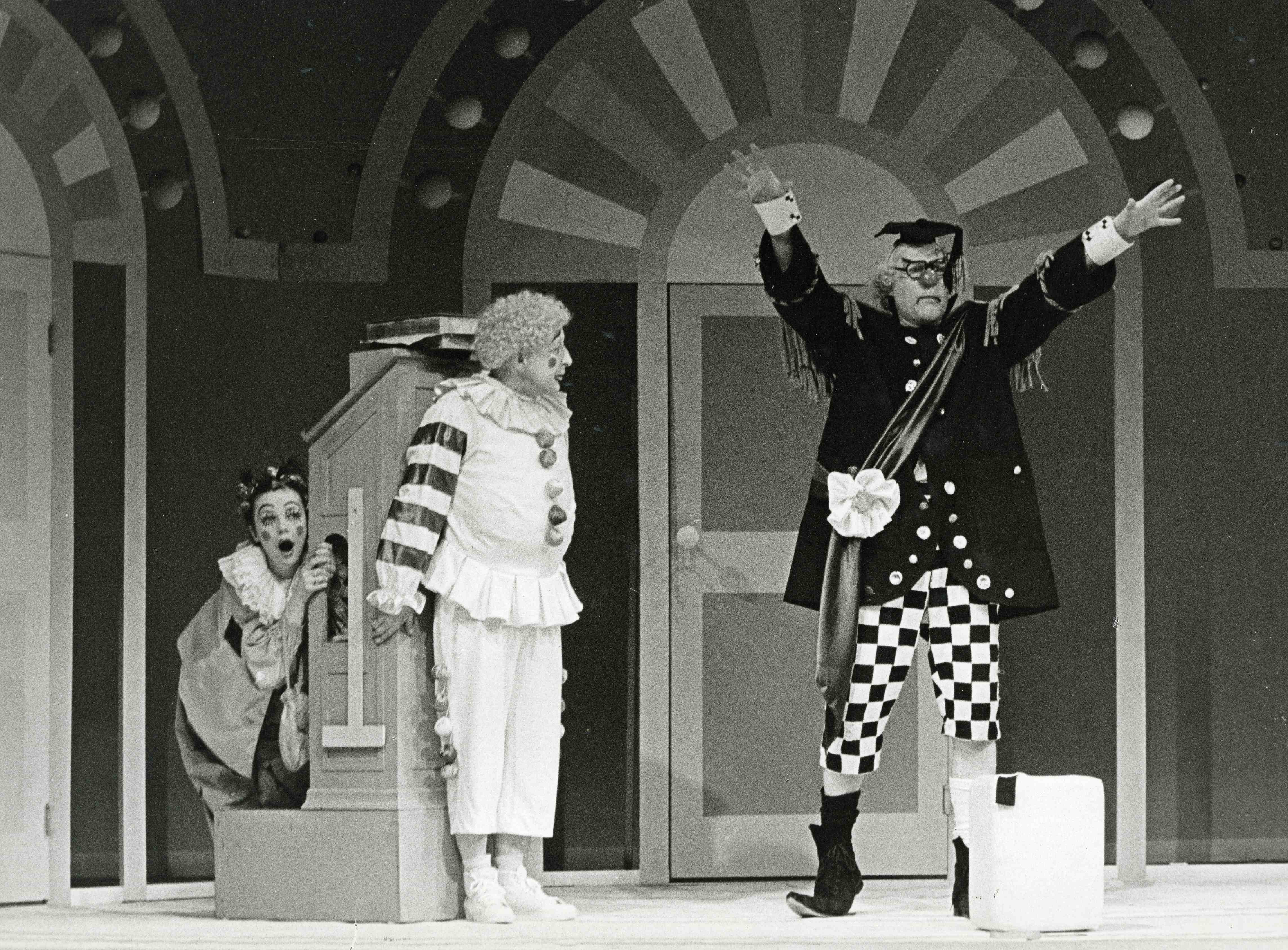 Fotografi fra Oslo Nye Teaters produksjon Klovneskolen (1980).