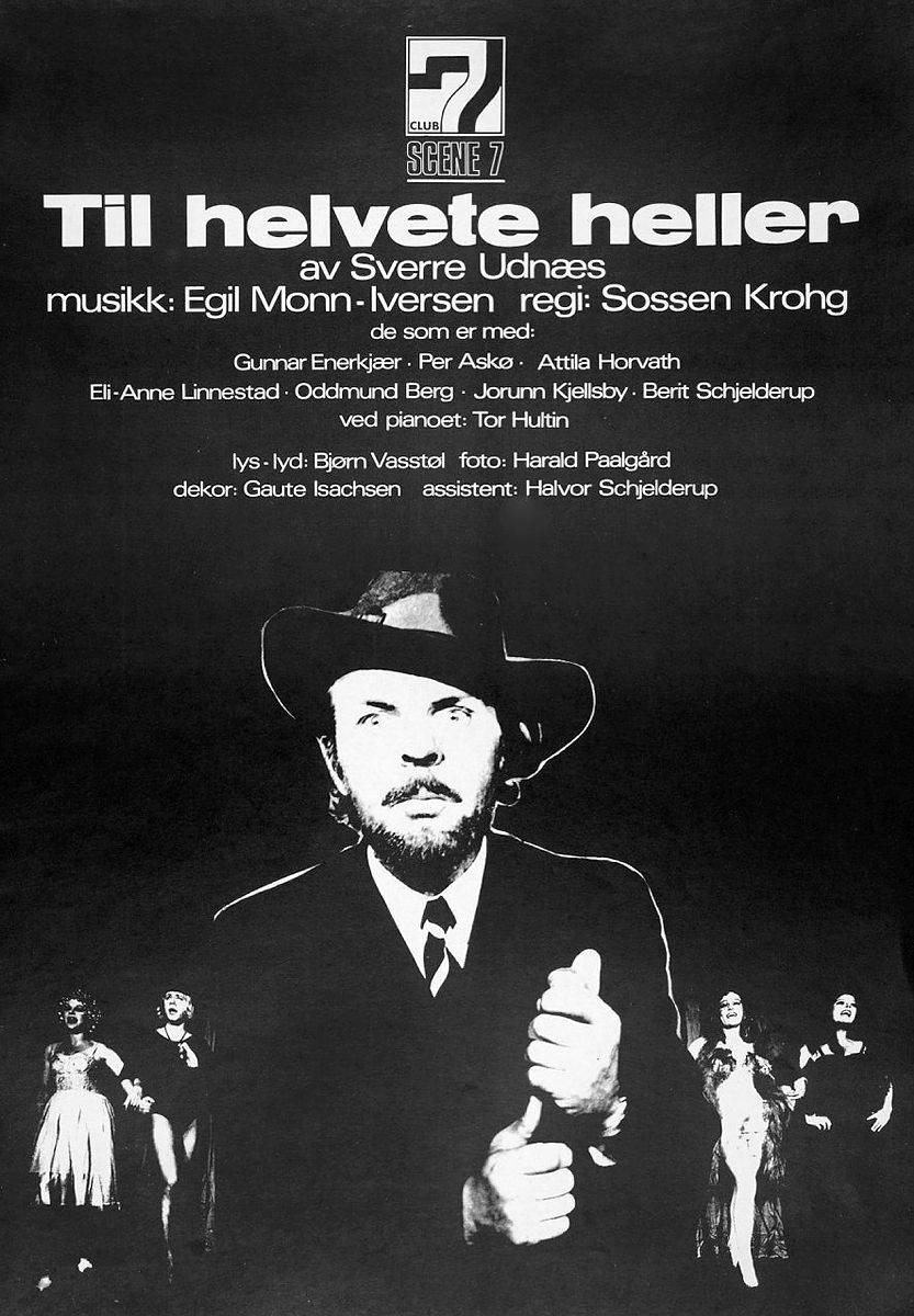 Plakat fra Scene 7s produksjon Til helvete heller (1972)