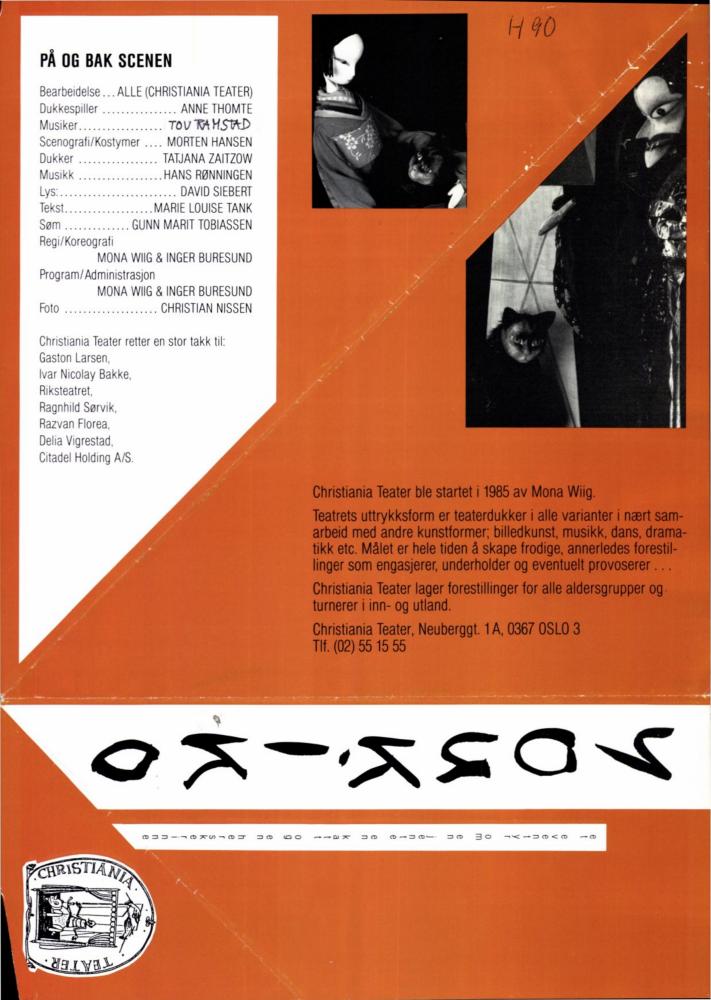 Forestillingsprogram for Christiania Teaters produksjon Youkiko (1990).