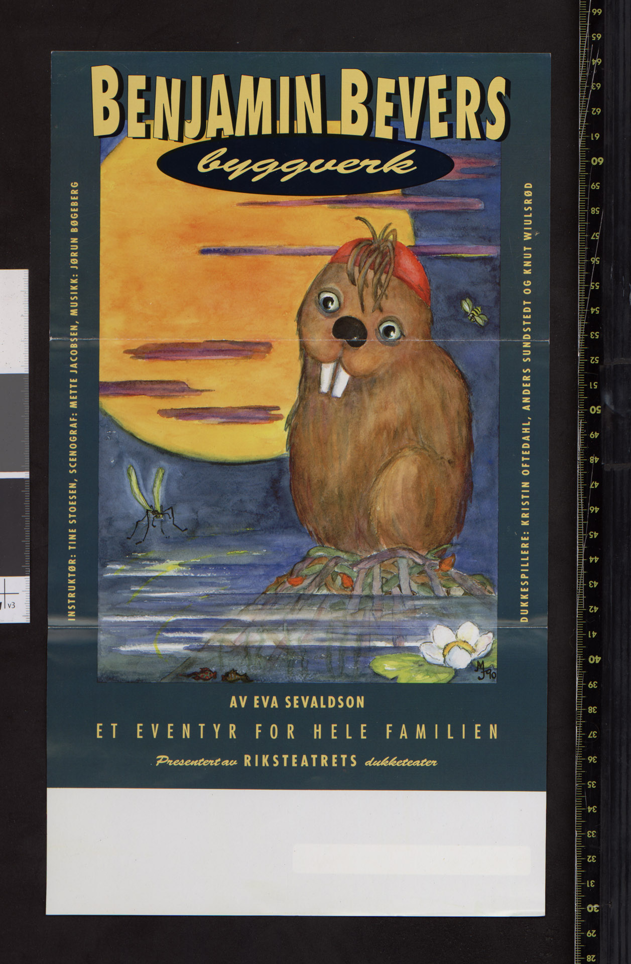 Plakat fra Riksteatrets produksjon Benjamin Bevers byggverk (1990).