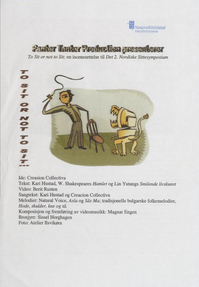 Forestillingsprogram for Panter Tanters produksjon To sit or not to sit.