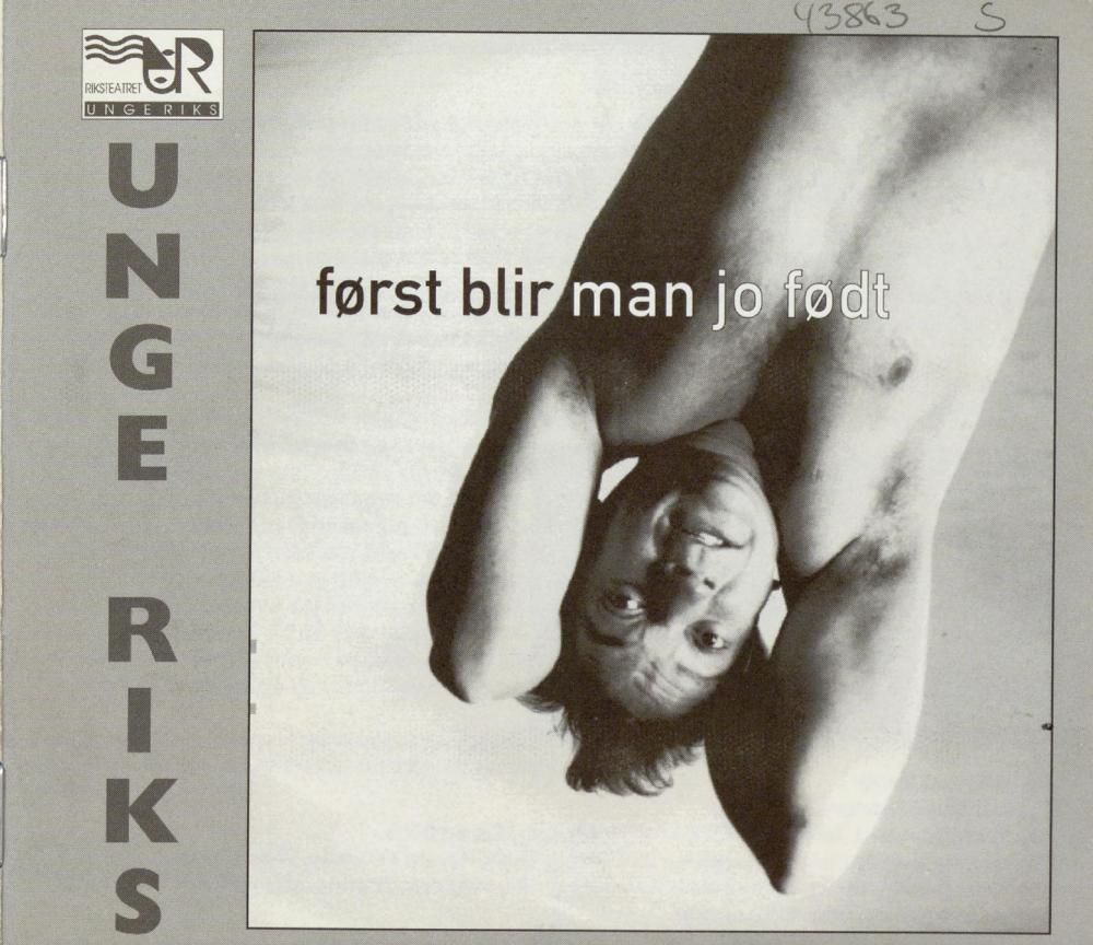 Forestillingsprogram fra Riksteatrets produksjon Først blir man jo født (1996).