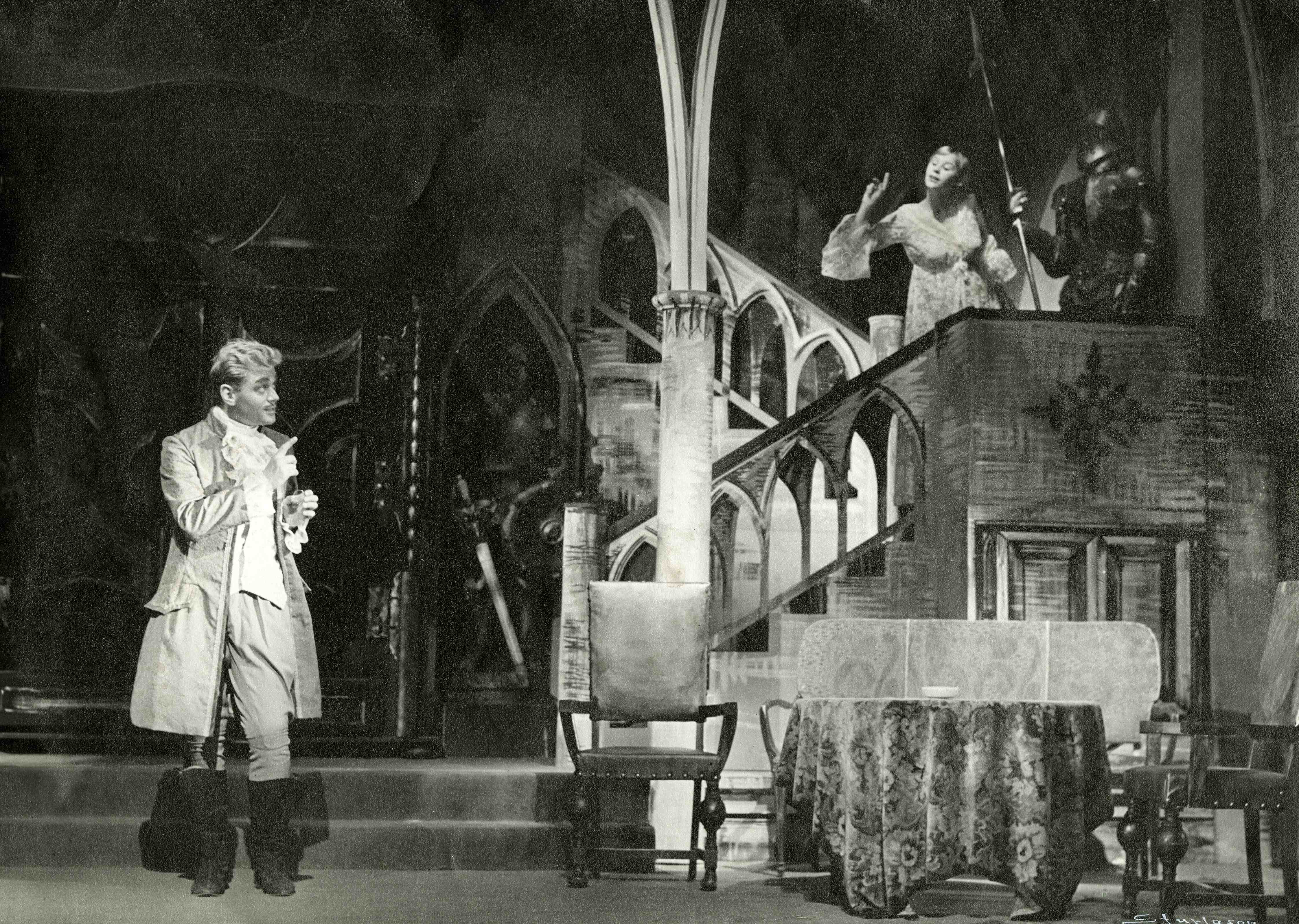 Fotografi fra Oslo Nye Teaters produksjon Slott i Sverige (1960).
