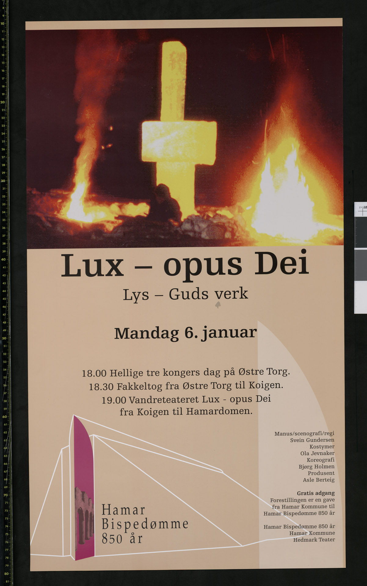 Plakat for Kulturproduksjoner og Hedmark og Oppland Bispedømmeråds produksjon Lux - Opus Dei (2003).