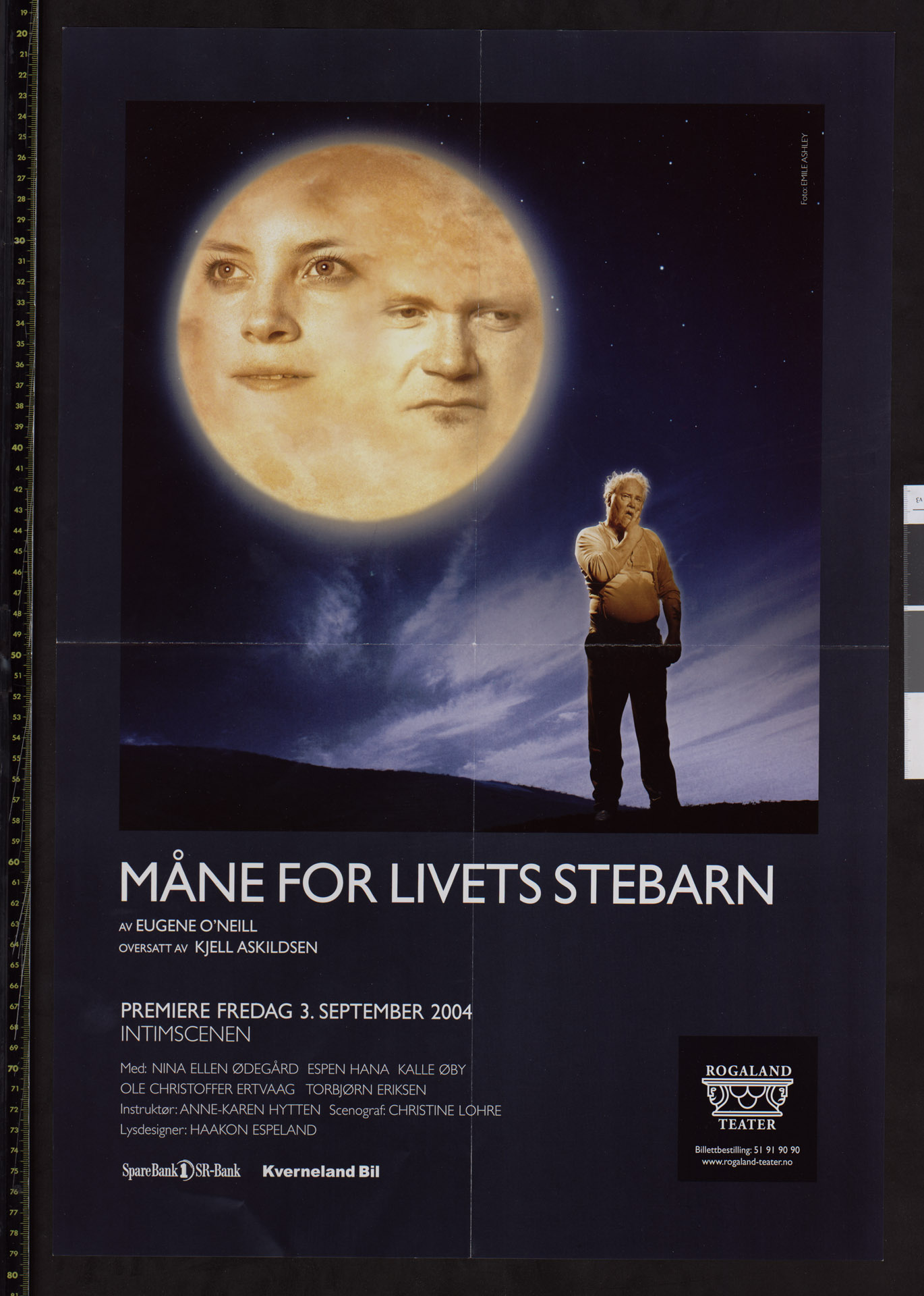 Plakat for Rogaland Teaters teaterproduksjon Måne for livets stebarn (2004)
