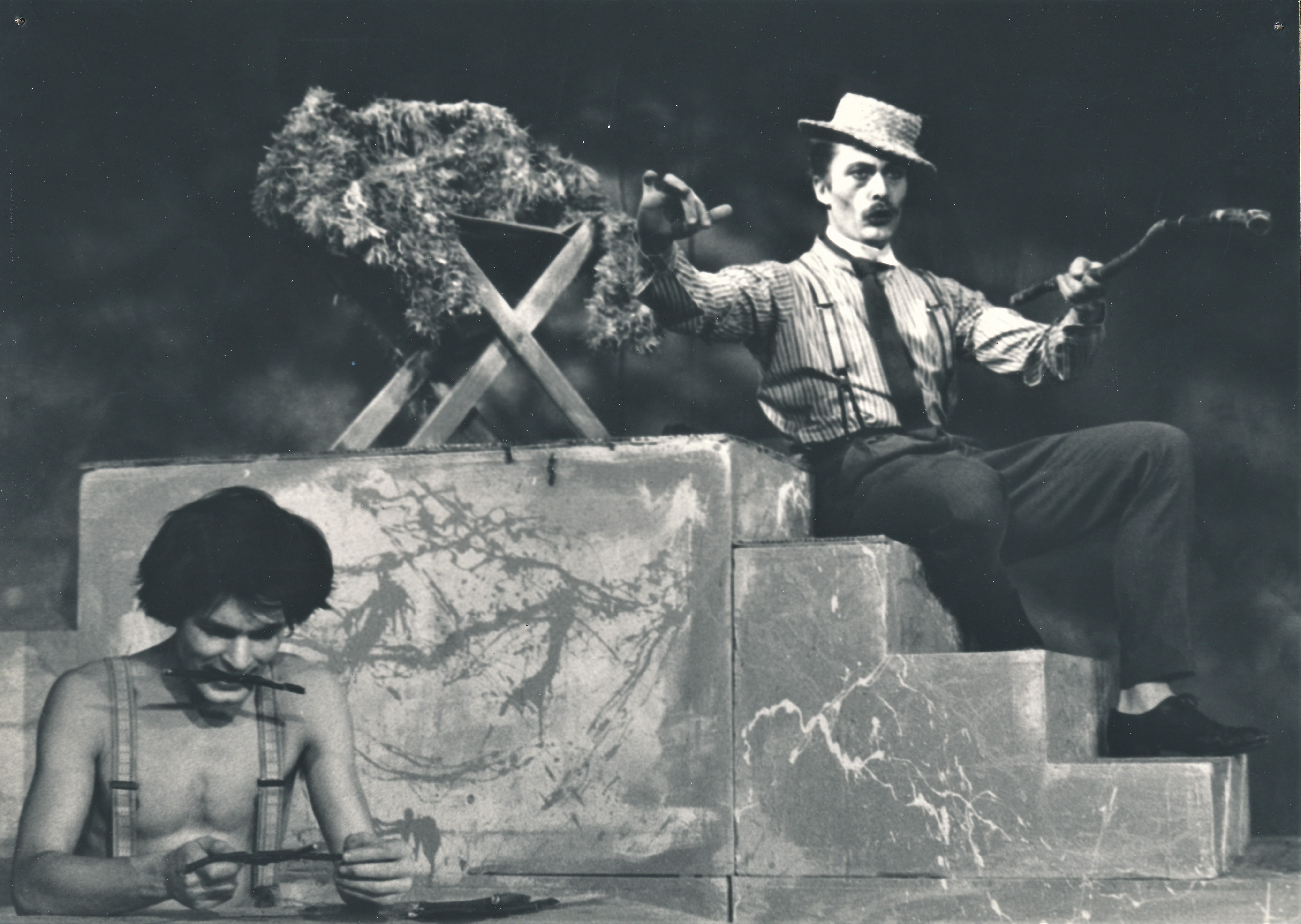 Fotografi fra Statens teaterskoles elevvisning Arkitekten og keiseren av Assyria, 3.klasse instruktørutdanningen (1981)