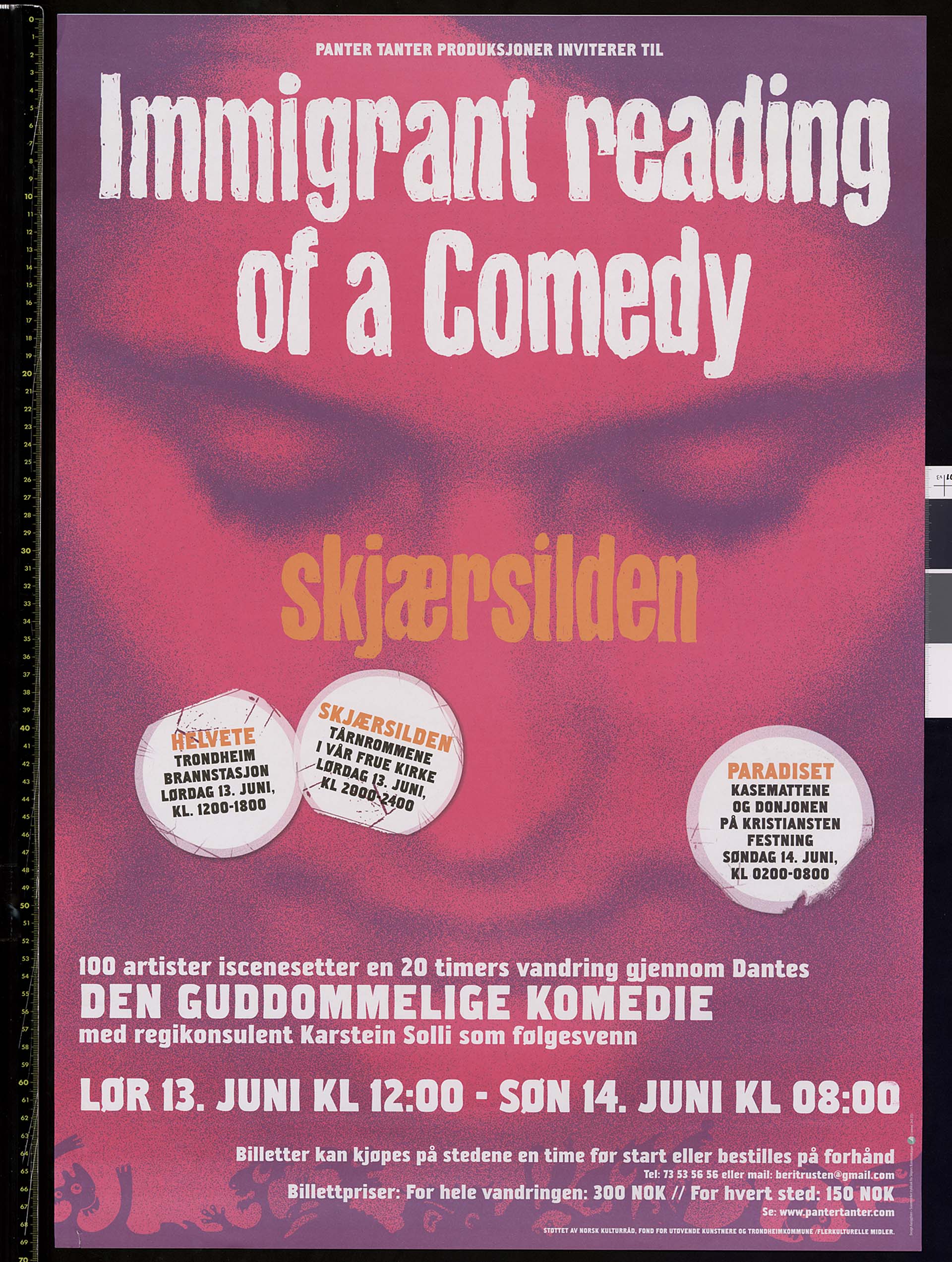 Plakat for Panter Tanters produksjon Immigrant reading of a Comedy - helvete, skjærsilden, paradiset (2008)