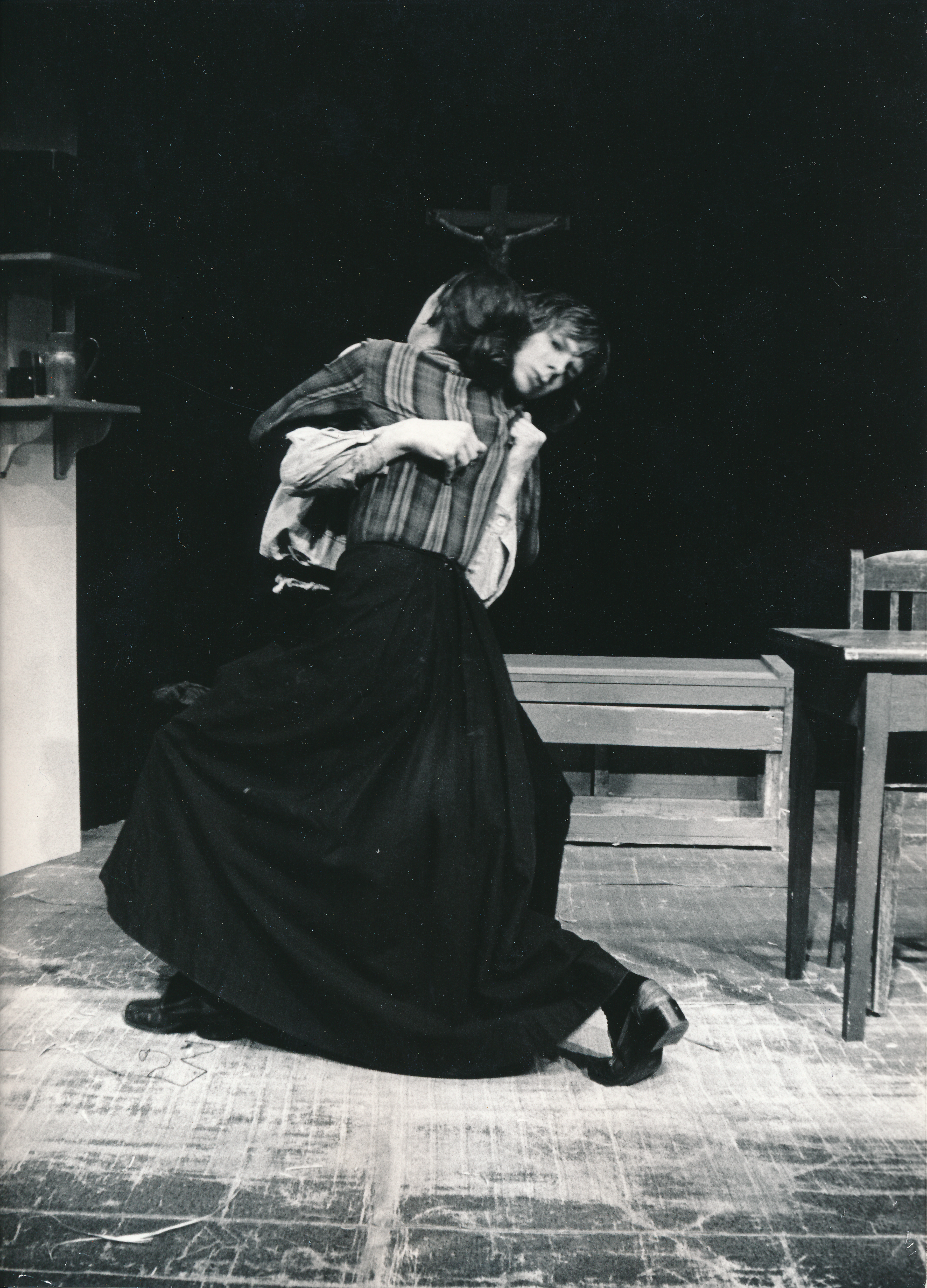 Fotografi fra Statens teaterskoles elevvisning Fru Carrars gevær (1975)