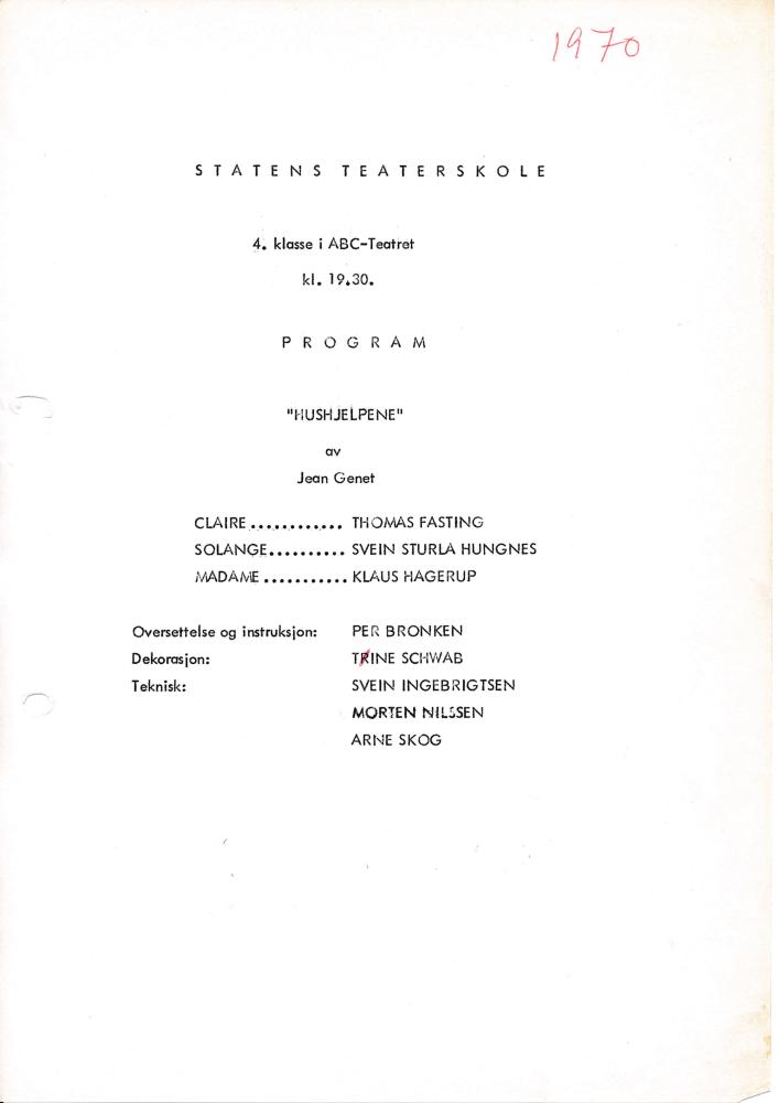 Program til Statens teaterskoles elevvisning Hushjelpene (1970)