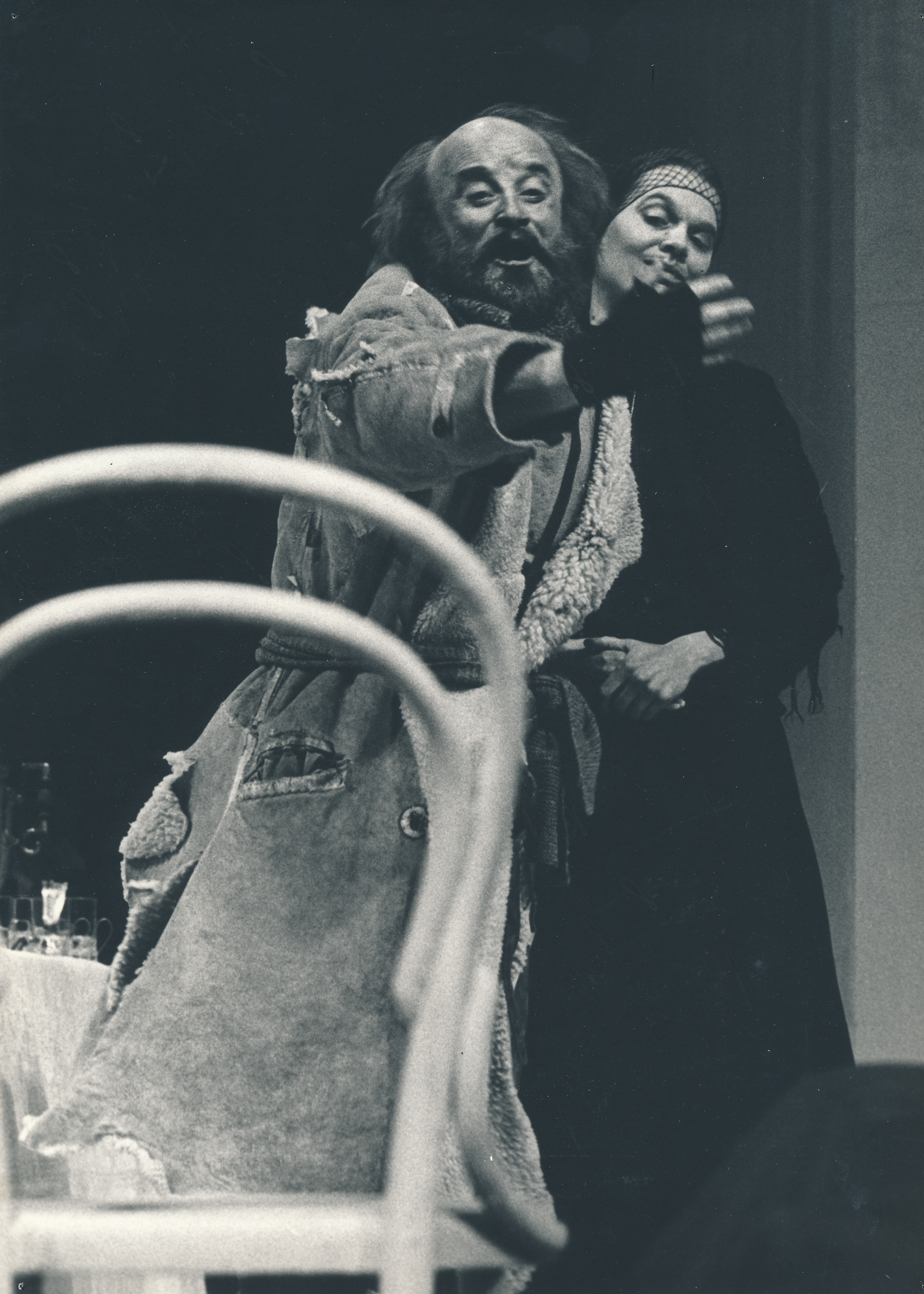 Fotografi fra Statens teaterskoles elevvisning av Småborgarar (1979)