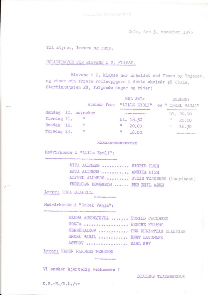 Invitasjon til Statens teaterskoles elevvisning Lille Eyolf (1975)