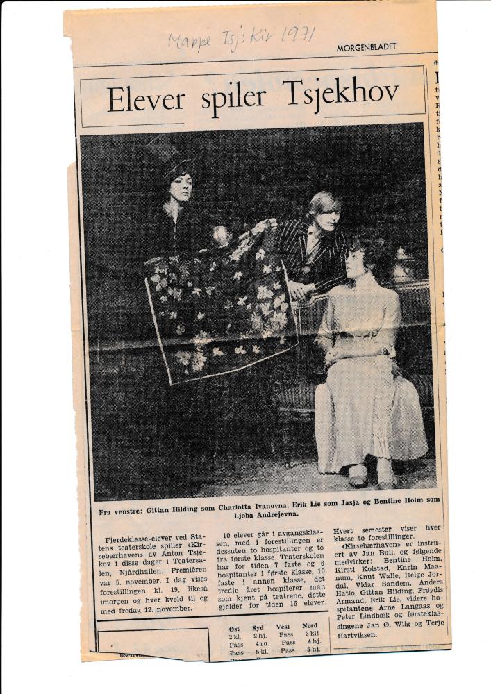 Presseklipp om Statens teaterskoles elevvisning Kirsebærhaven (1971)