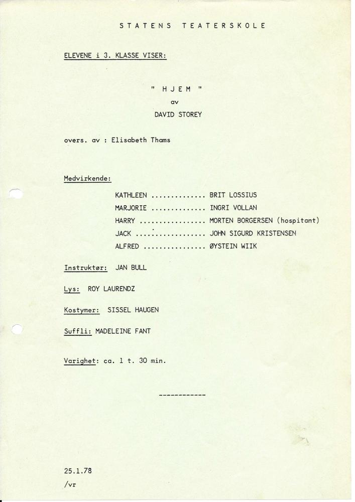 Program fra Statens teaterskoles elevvisning Hjem (1978)