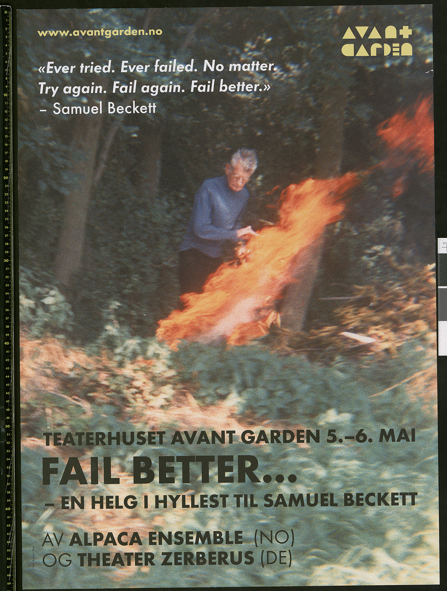 Plakat for Alpaca Ensemble (NO),Theater Zerberus (DE) og Neither Nor Productions (NO/DE/PL) sin produksjon Fail better... (2017)