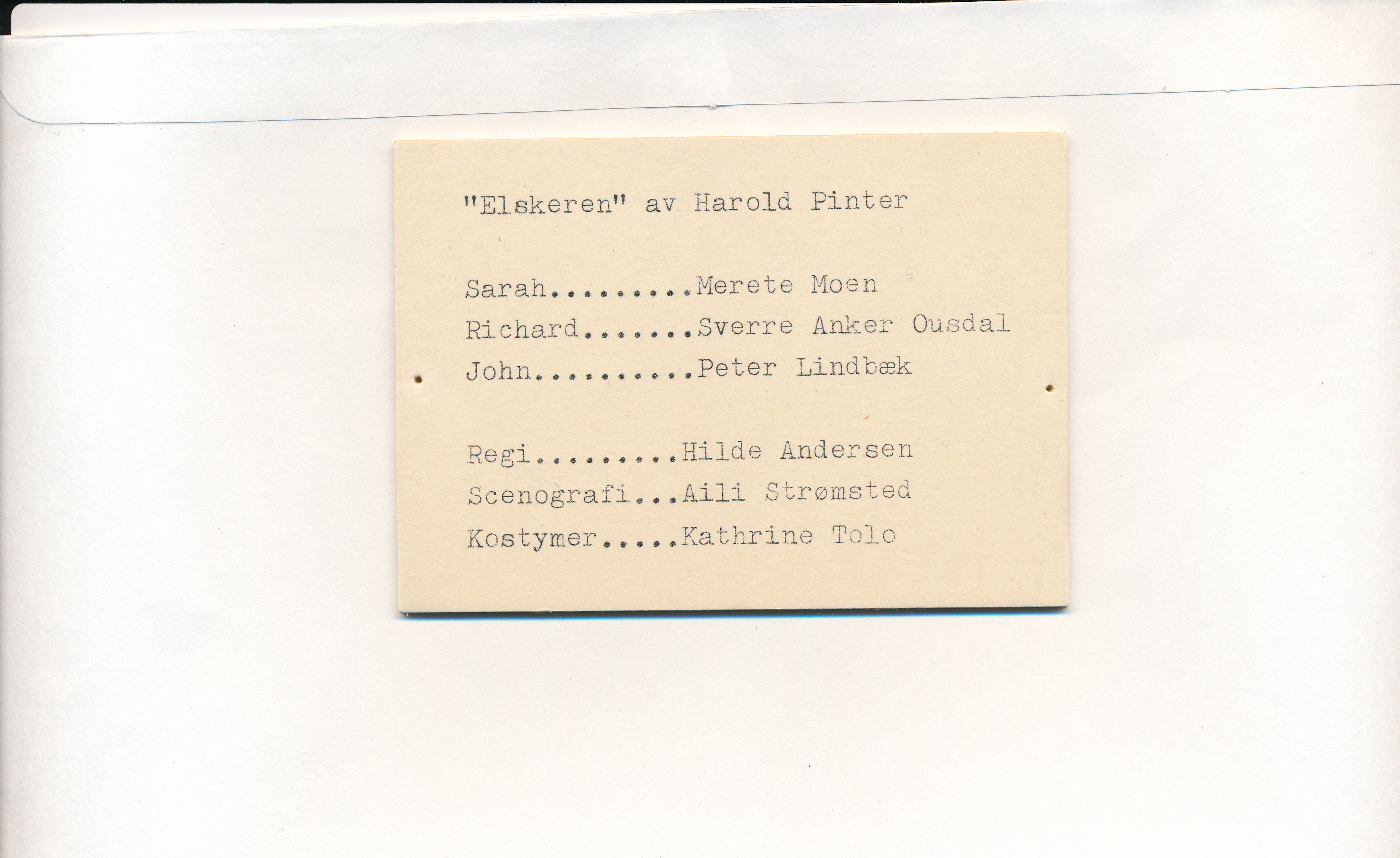 Rolleliste for Statens teaterhøgskoles produksjon Elskeren (1981)