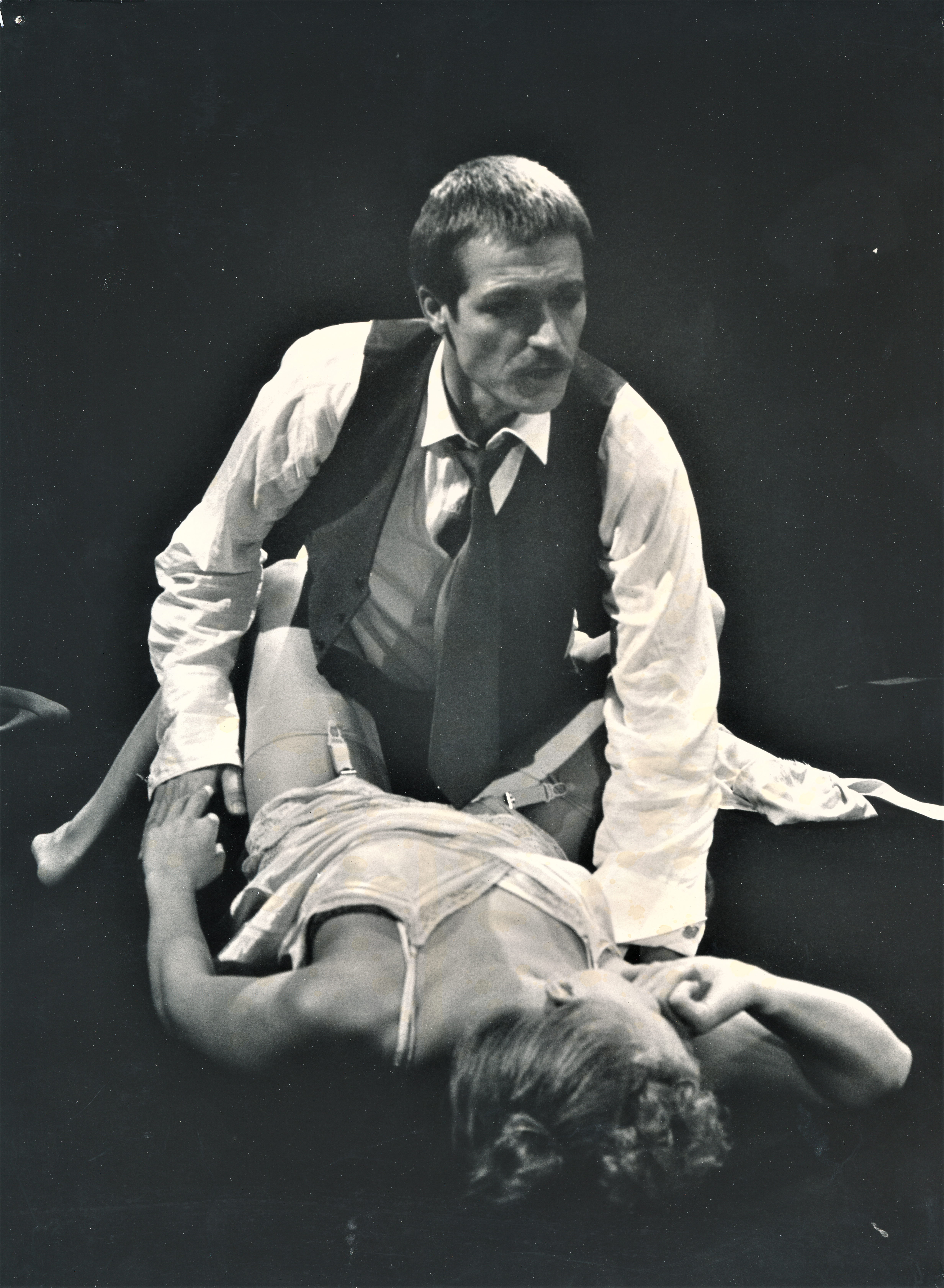 Fotografi fra Statens teaterskoles produksjon For lukkede dører (1981).