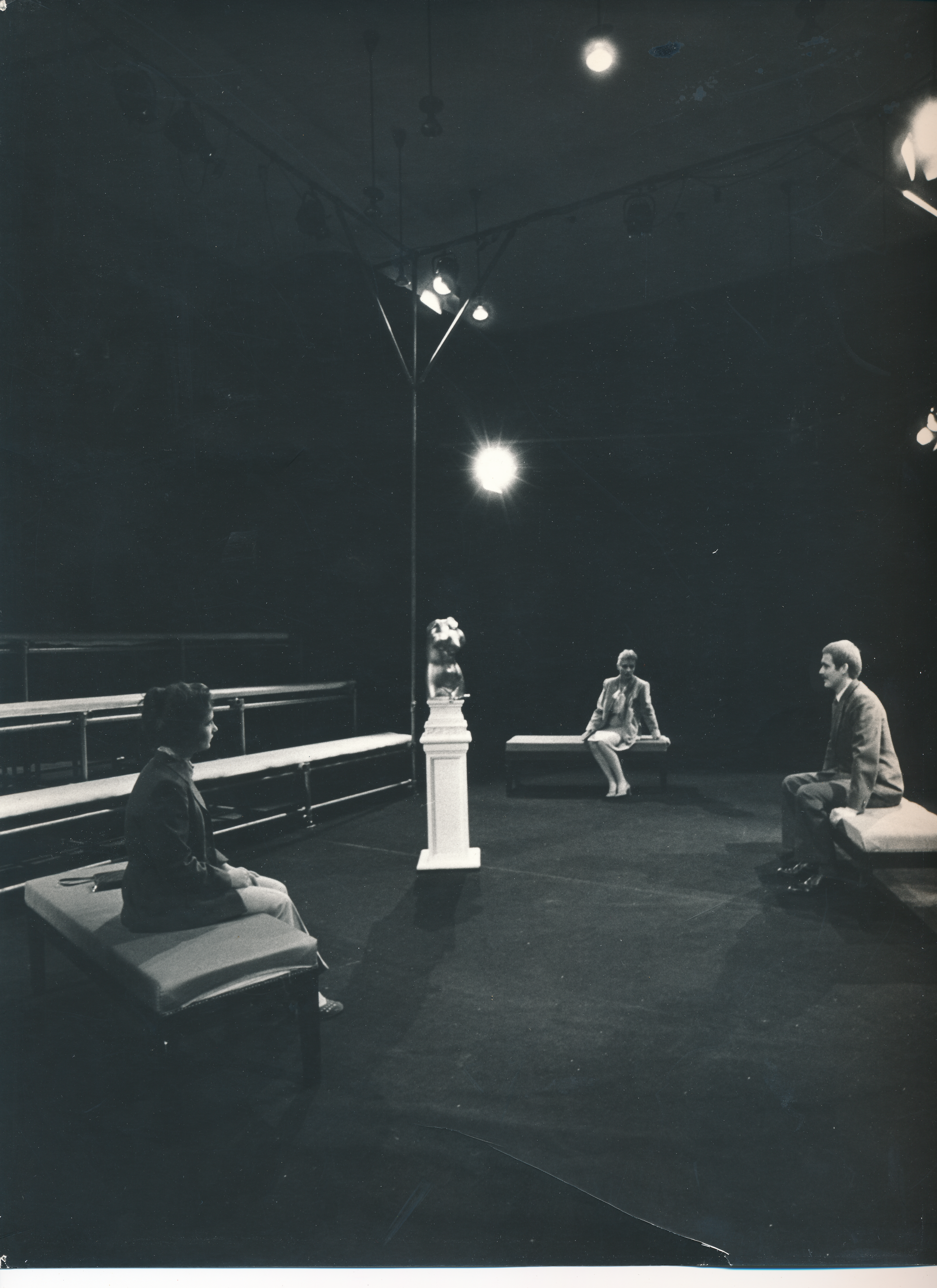 Fotografi fra Statens teaterskoles produksjon For lukkede dører (1981).
