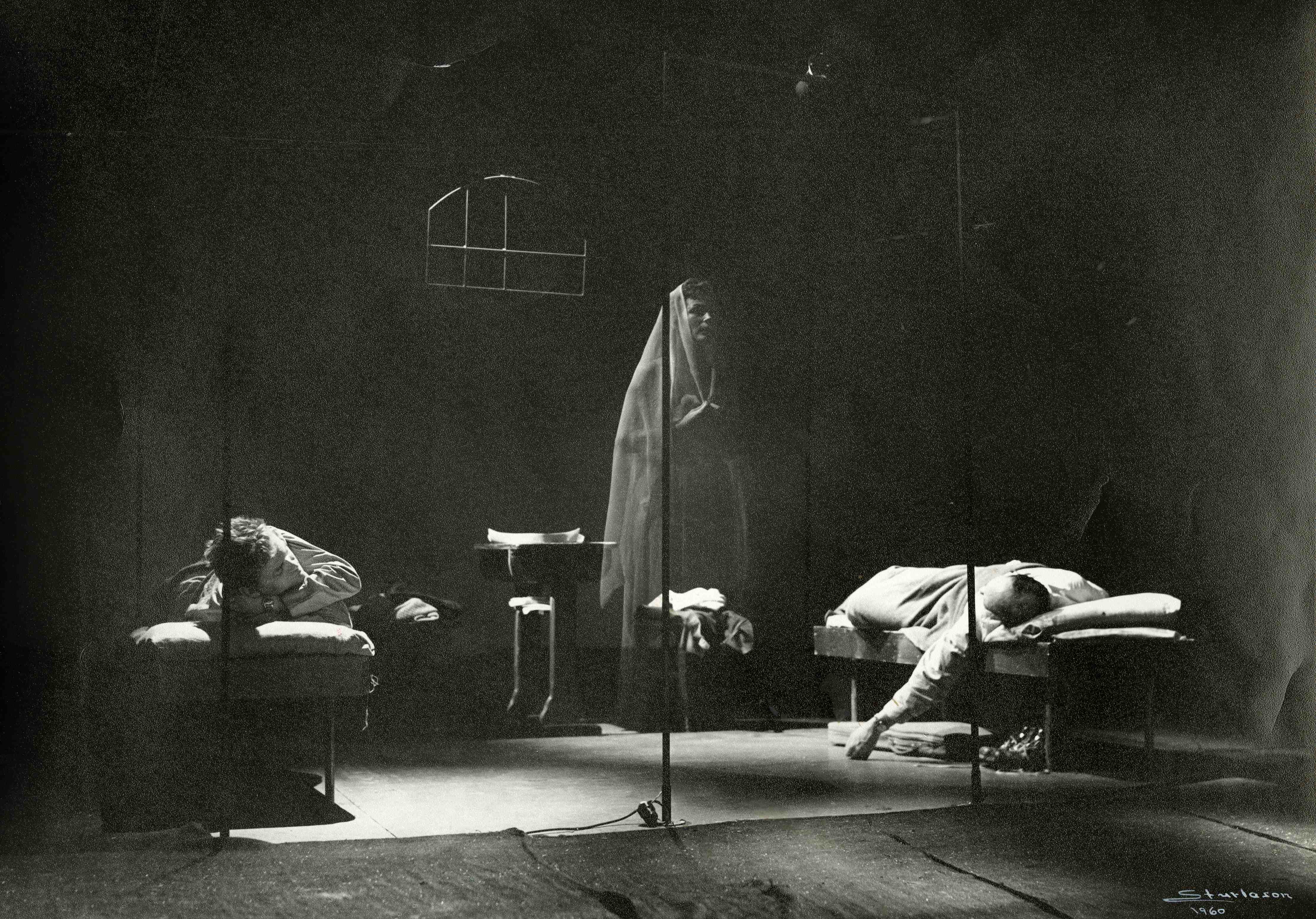 Fotografi fra Oslo Nye Teaters produksjon Invitt til døden (1960).