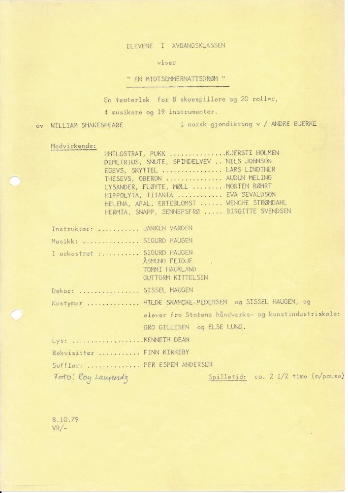 Program til Statens teaterskoles elevvisning En midtsommernattdrøm (1979)