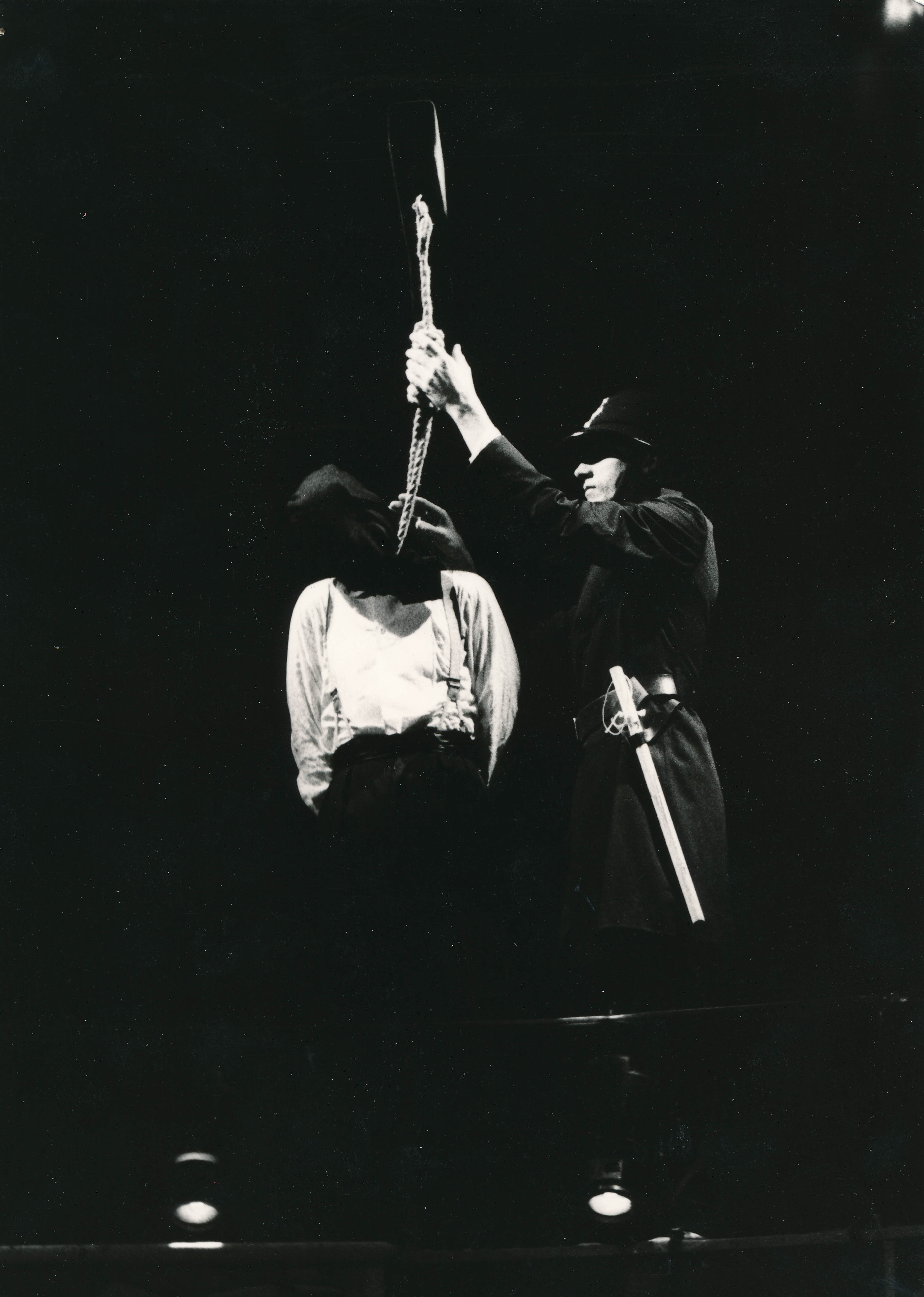 Fotografi fra Statens teaterskoles elevvisning Tolvskillingsoperaen (1983)