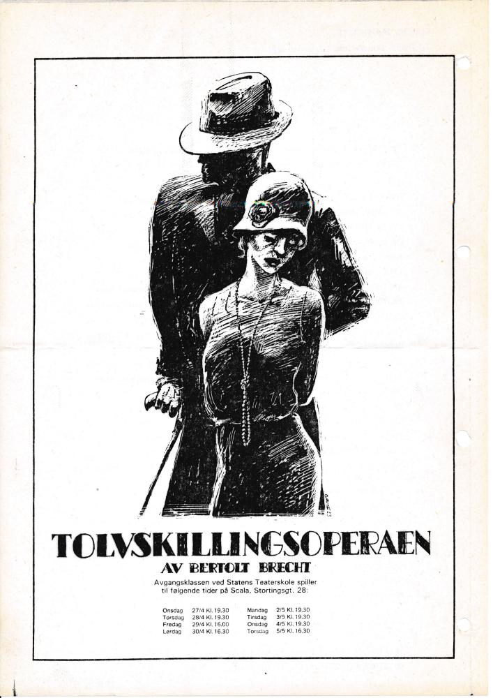 Program, side 1, til Statens teaterskoles elevvisning Tolvskillingsoperaen (1983)