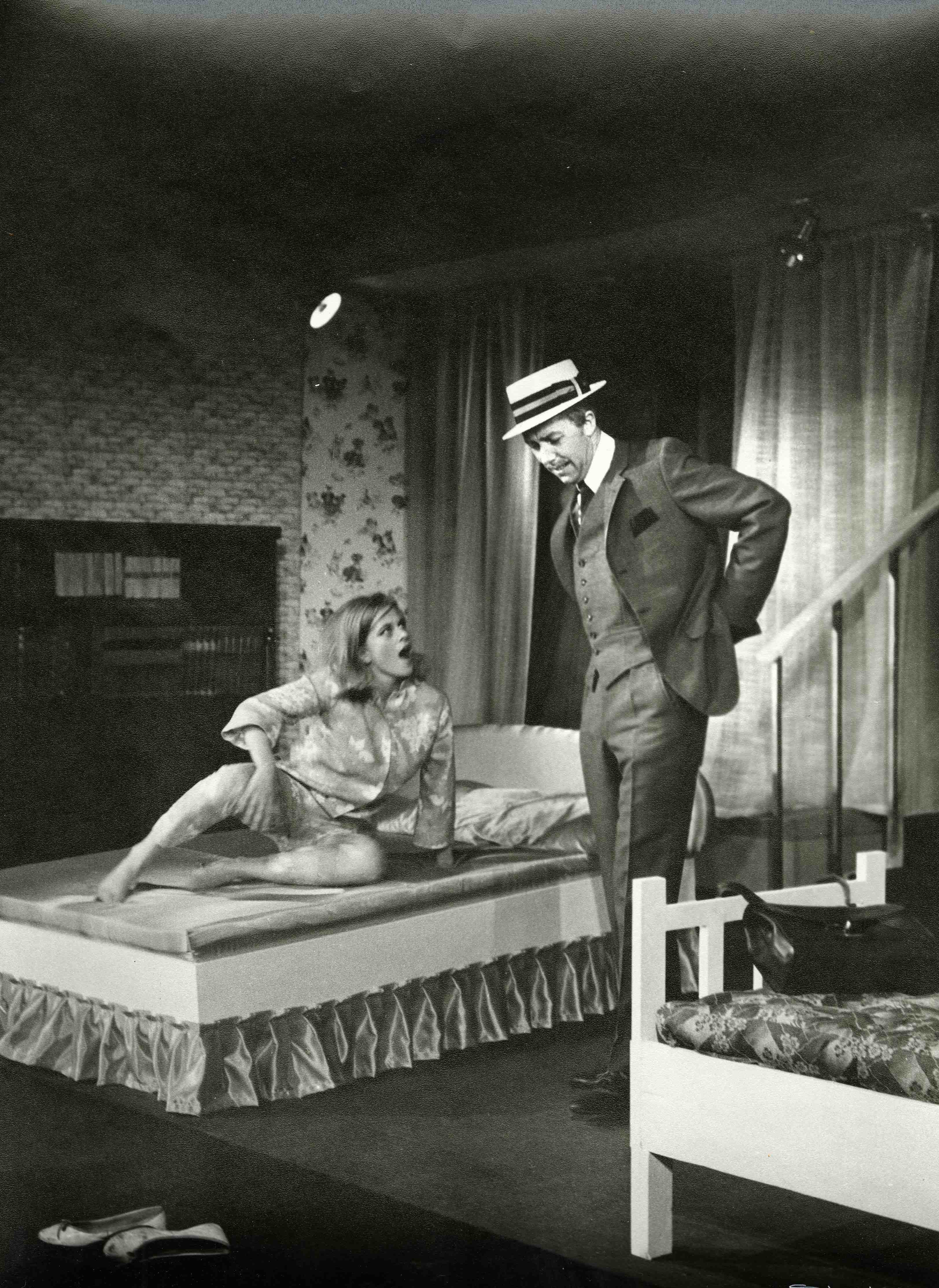 Fotografi fra Oslo Nye Teaters produksjon Elskling, du vet at jeg ikke kan høre (1968).