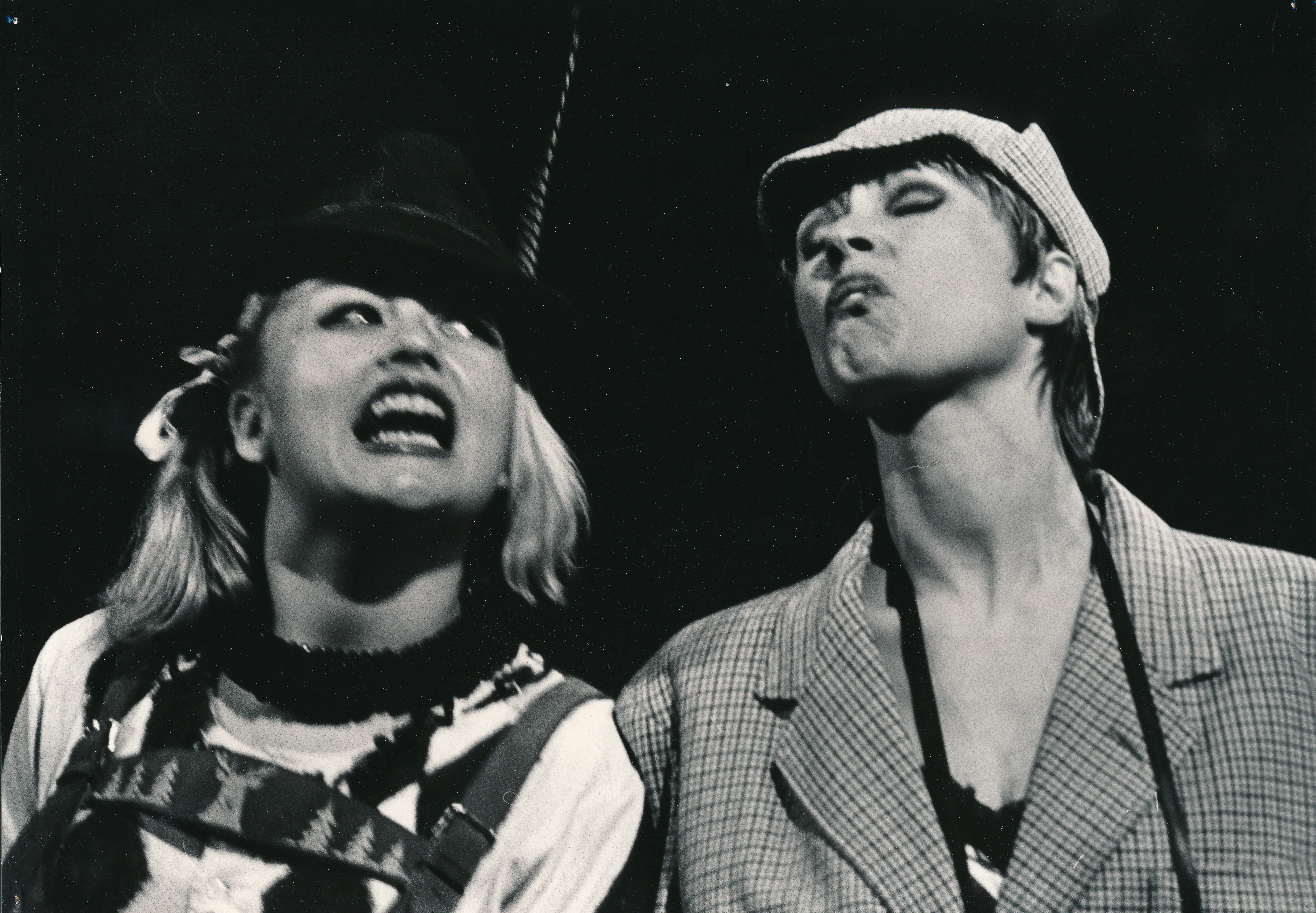 Fotografi fra Statens teaterskoles elevvisning Ai, ai, for ein artig krig (1981)