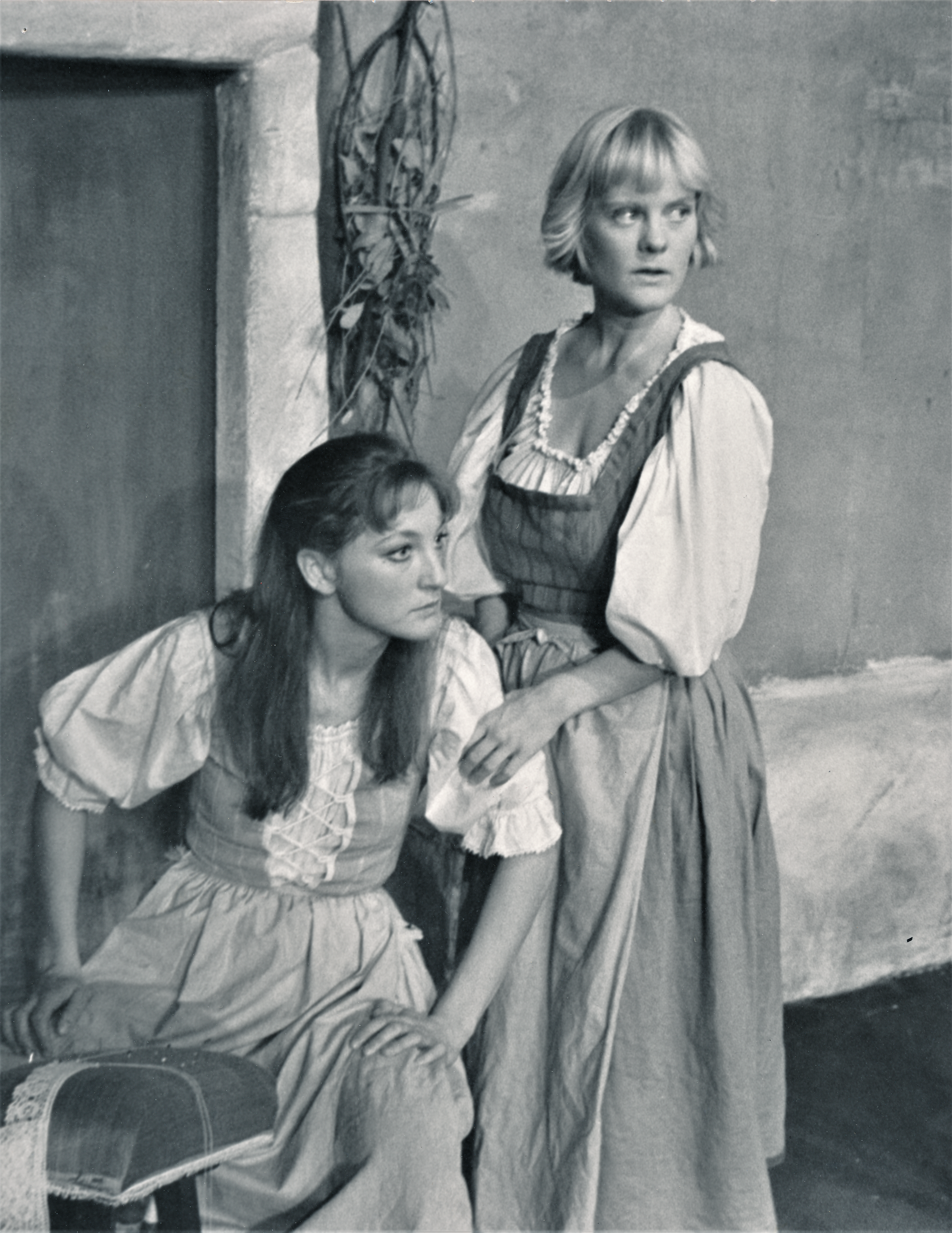 Fotografi fra Statens teaterskoles elevproduksjon Bråk i Chiozza (1984).
