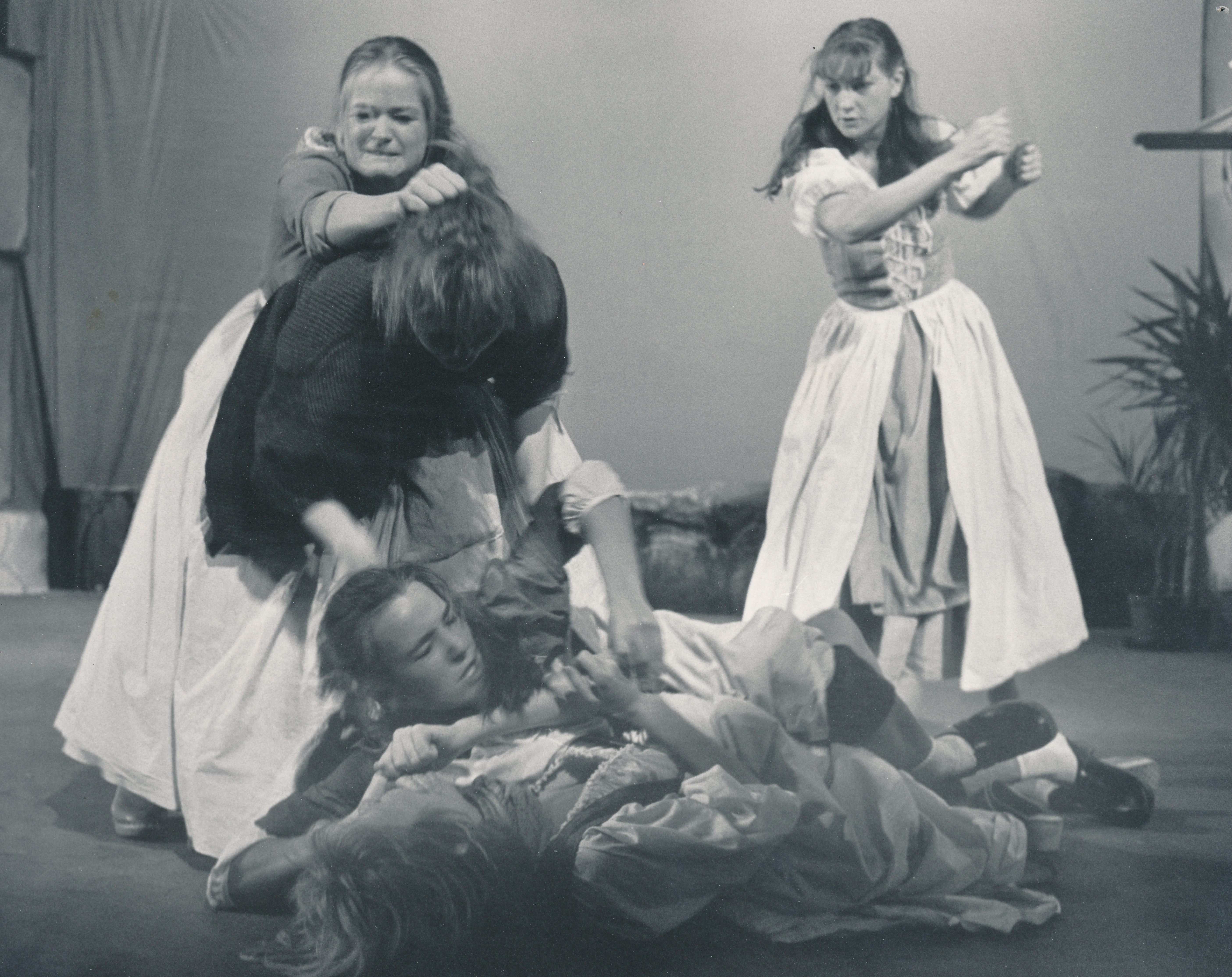 Fotografi fra Statens teaterskoles elevproduksjon Bråk i Chiozza (1984).