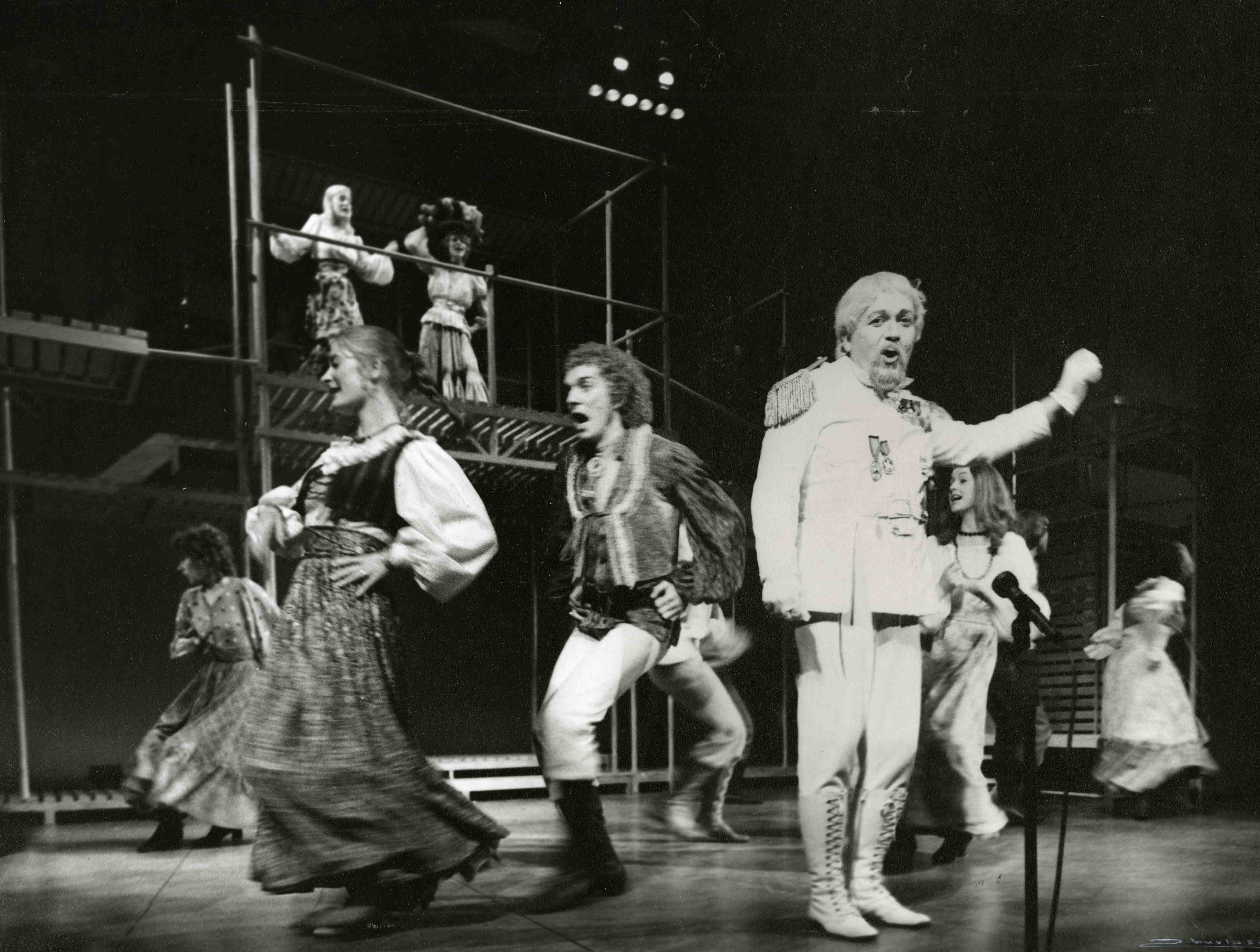 Fotografi fra Oslo Nye Teaters produksjon To muntre herrer fra Verona (1973).
