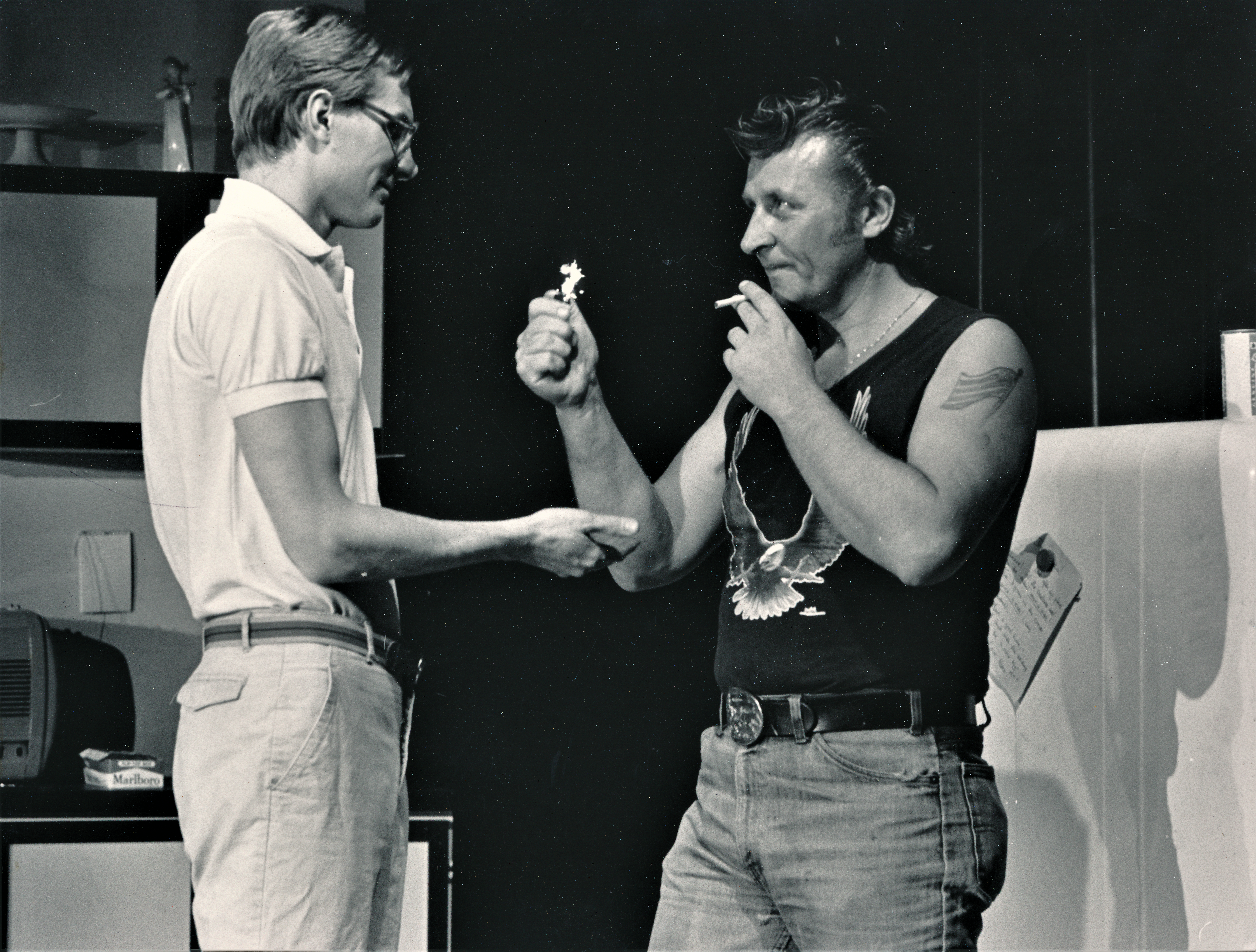 Fotografi fra Statens teaterskoles elevproduksjon En real Western (1984)