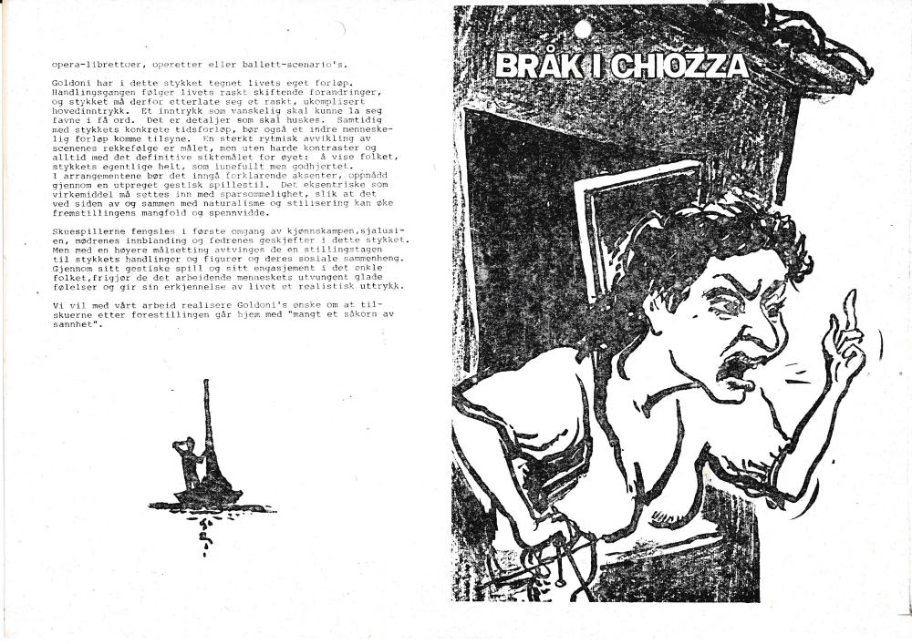 Program til Statens teaterskoles elevproduksjon Bråk i Chiozza (1984).