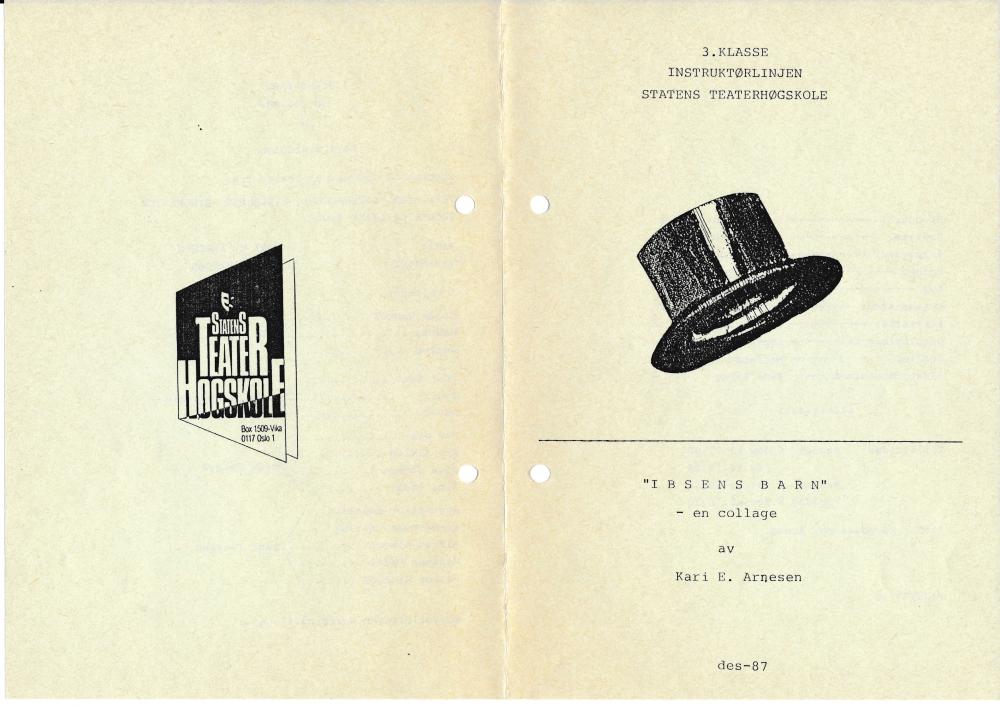 Program til Statens teaterhøgskoles produksjon Ibsens barn - en collage (1987).