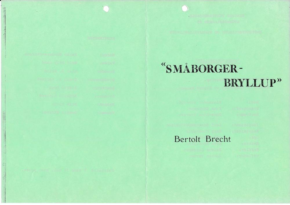 Program til Statens teaterhøgskoles produksjon Småborgerbryllup (1985).