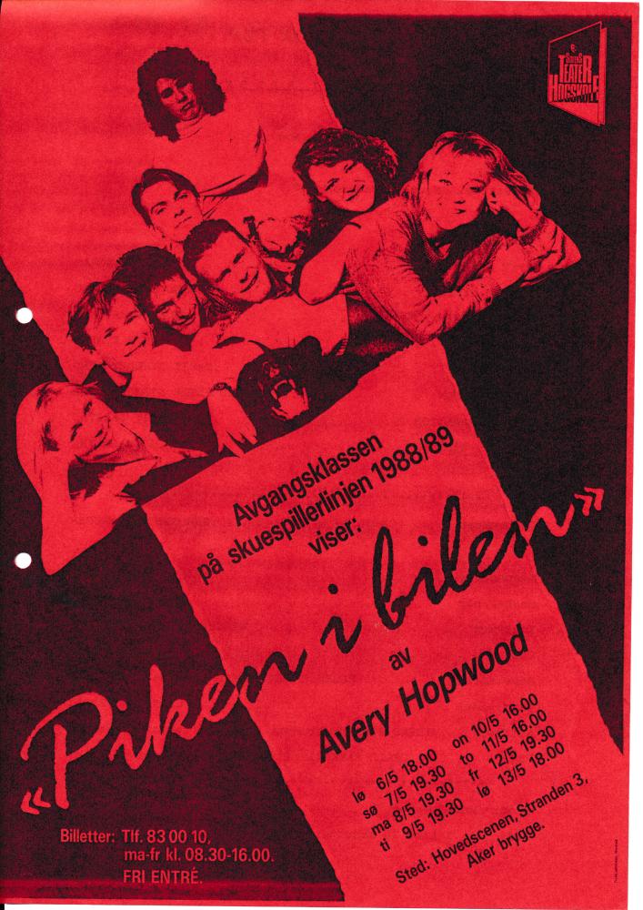Program til Statens teaterhøgskoles studentproduksjon Piken i bilen (1989).