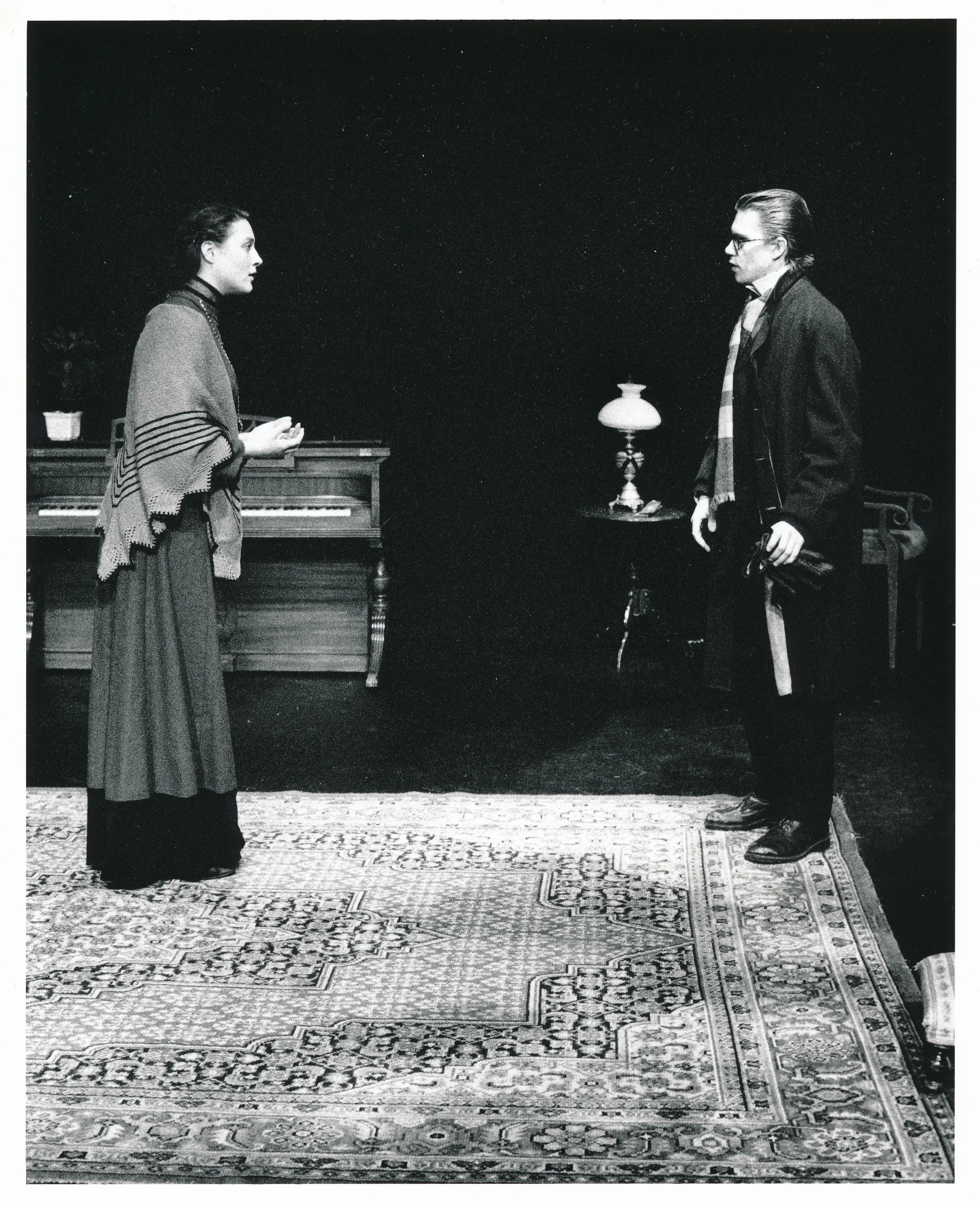 Fotografi fra Statens teaterskoles studentvisning Et dukkehjem - scener (1989)