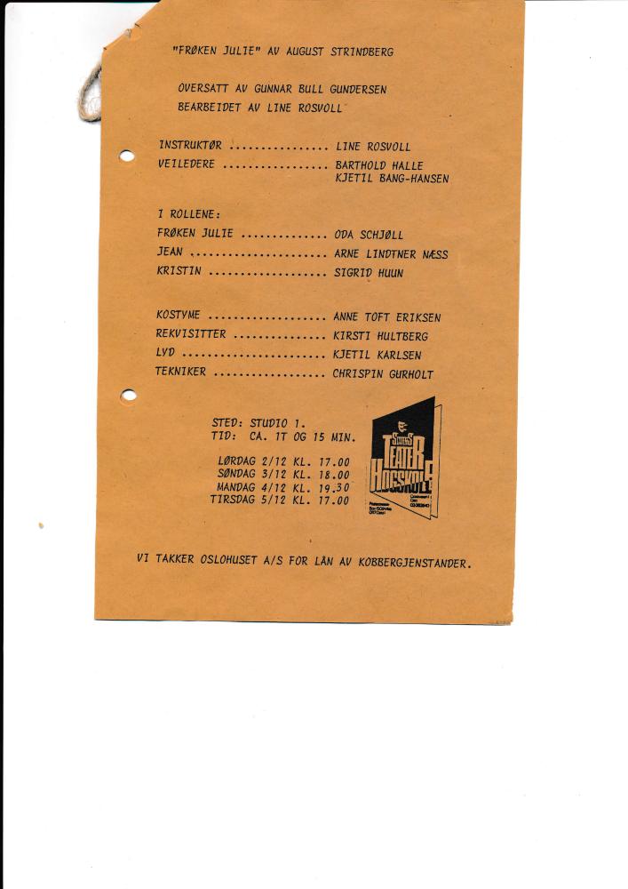 Program til Statens teaterhøgskoles studentproduksjon Frøken Julie (1989).