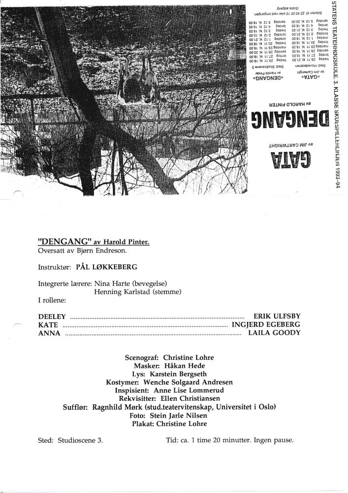 Program til Statens teaterhøgskoles studentproduksjon Dengang (1993).