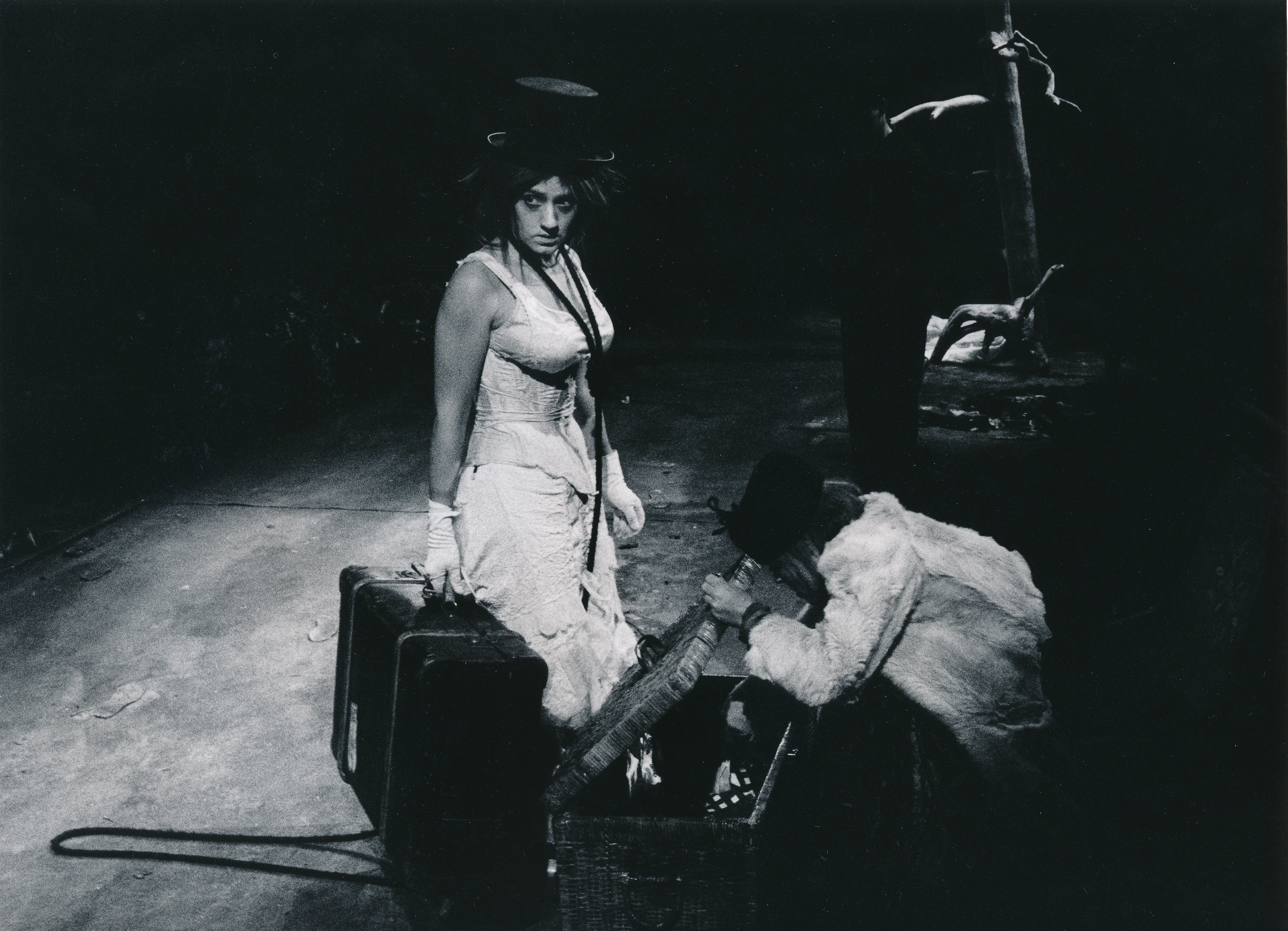 Fotografi fra Statens teaterhøgskoles studentproduksjon Mens vi venter på Godot (1995).