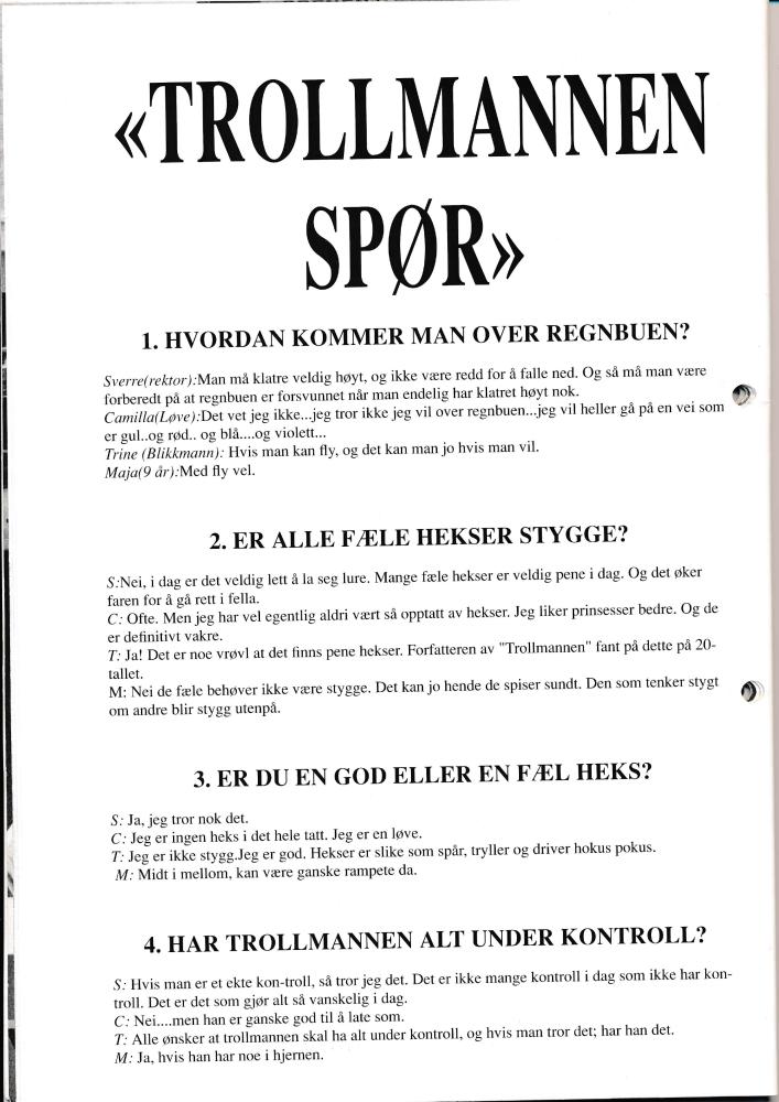 Program til Statens teaterhøgskoles avgangsproduksjon Over regnbuen (1994)
