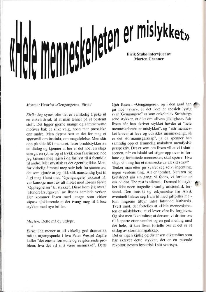 Program til Statens teaterhøgskoles avgangsproduksjon Gengangere side 2 (1994)