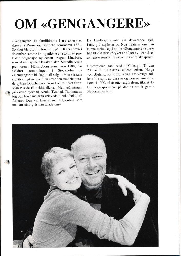 Program til Statens teaterhøgskoles avgangsproduksjon Gengangere side 3 (1994)