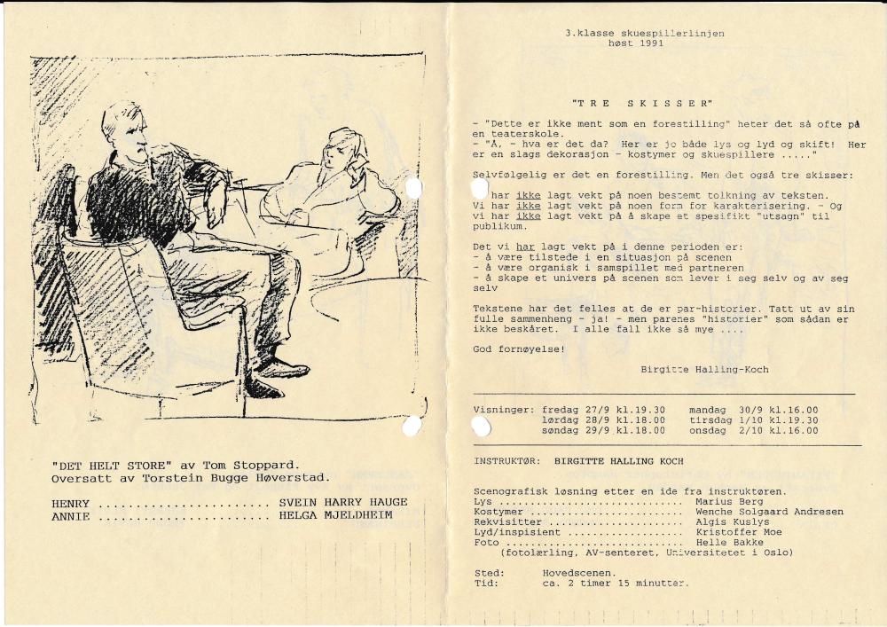 Program til Statens teaterskoles produksjon Samleren (1991)