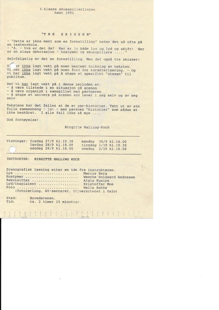 Program til Statens teaterhøgskoles studentproduksjon Filantropen (1991).