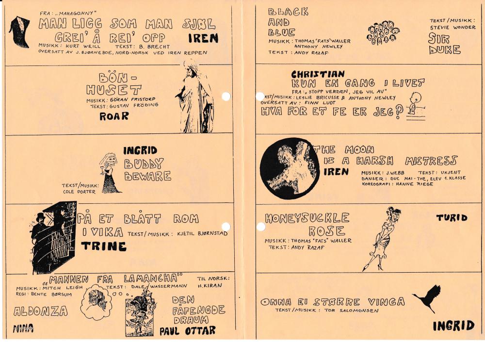Program til Statens teaterhøgskoles Sang- og danseprogram (1990).