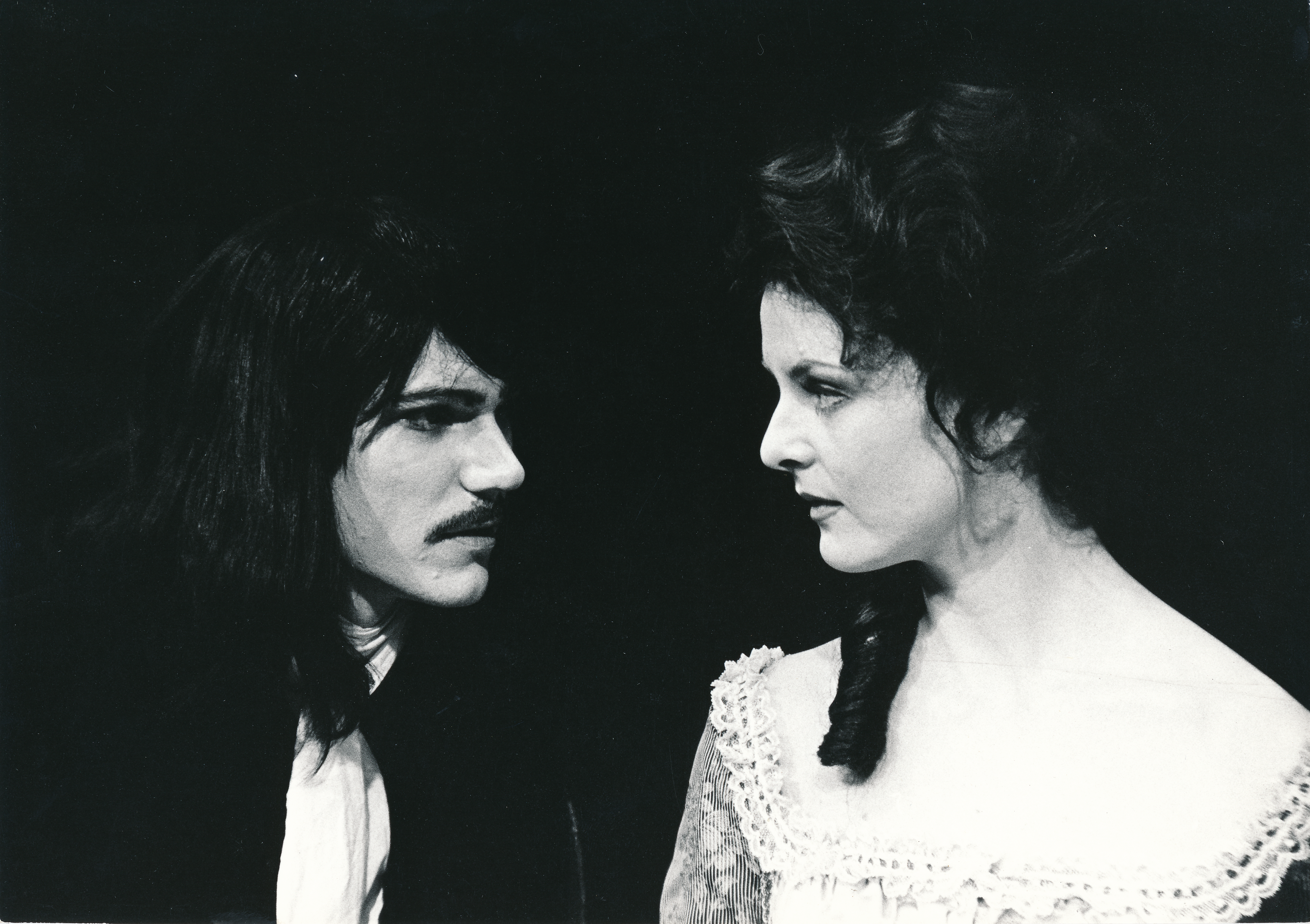 Fotografi fra Statens teaterskoles elevvisning med scener fra Tartuffe (1975)