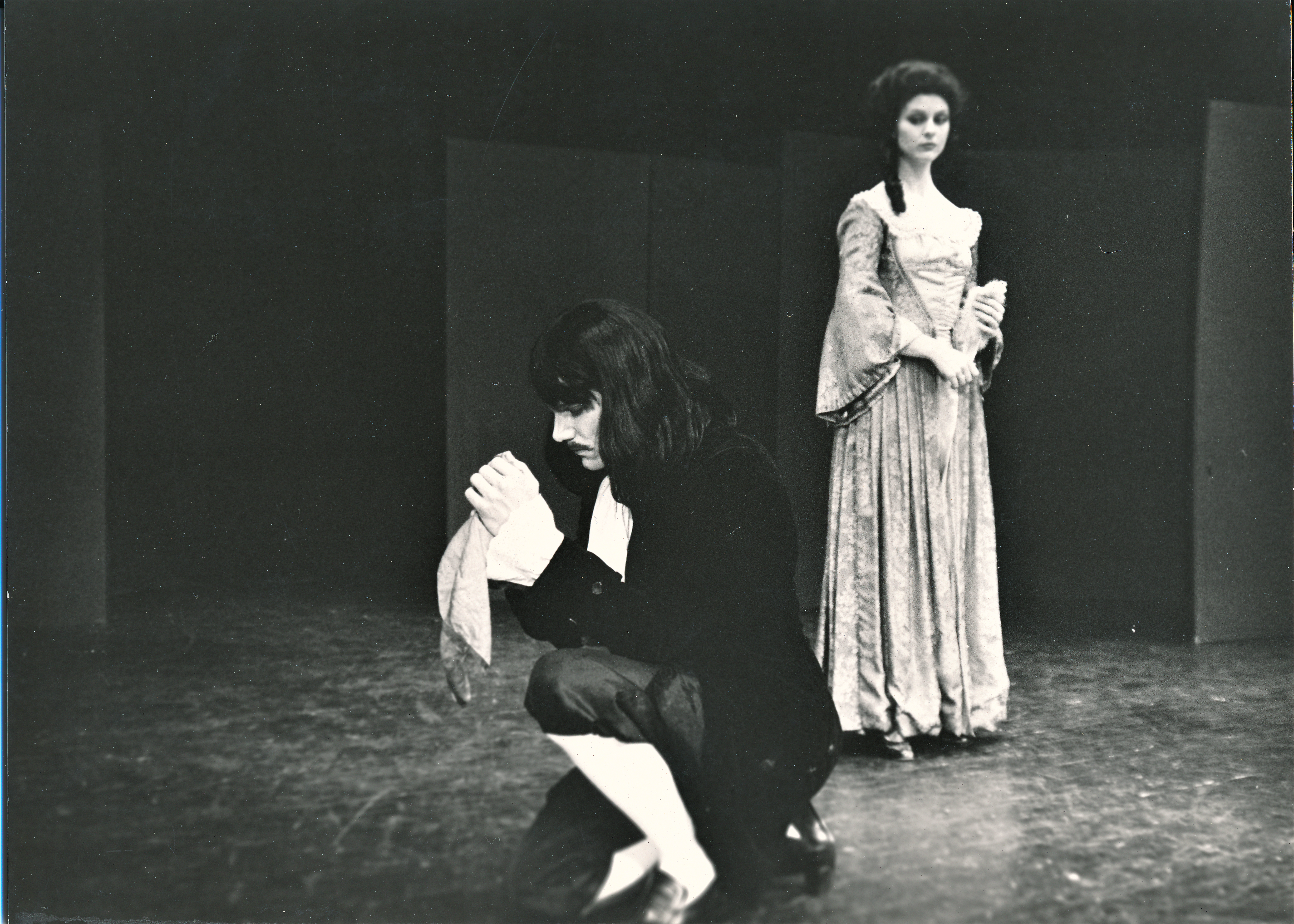 Fotografi fra Statens teaterskoles elevvisning med scener fra Tartuffe (1975)
