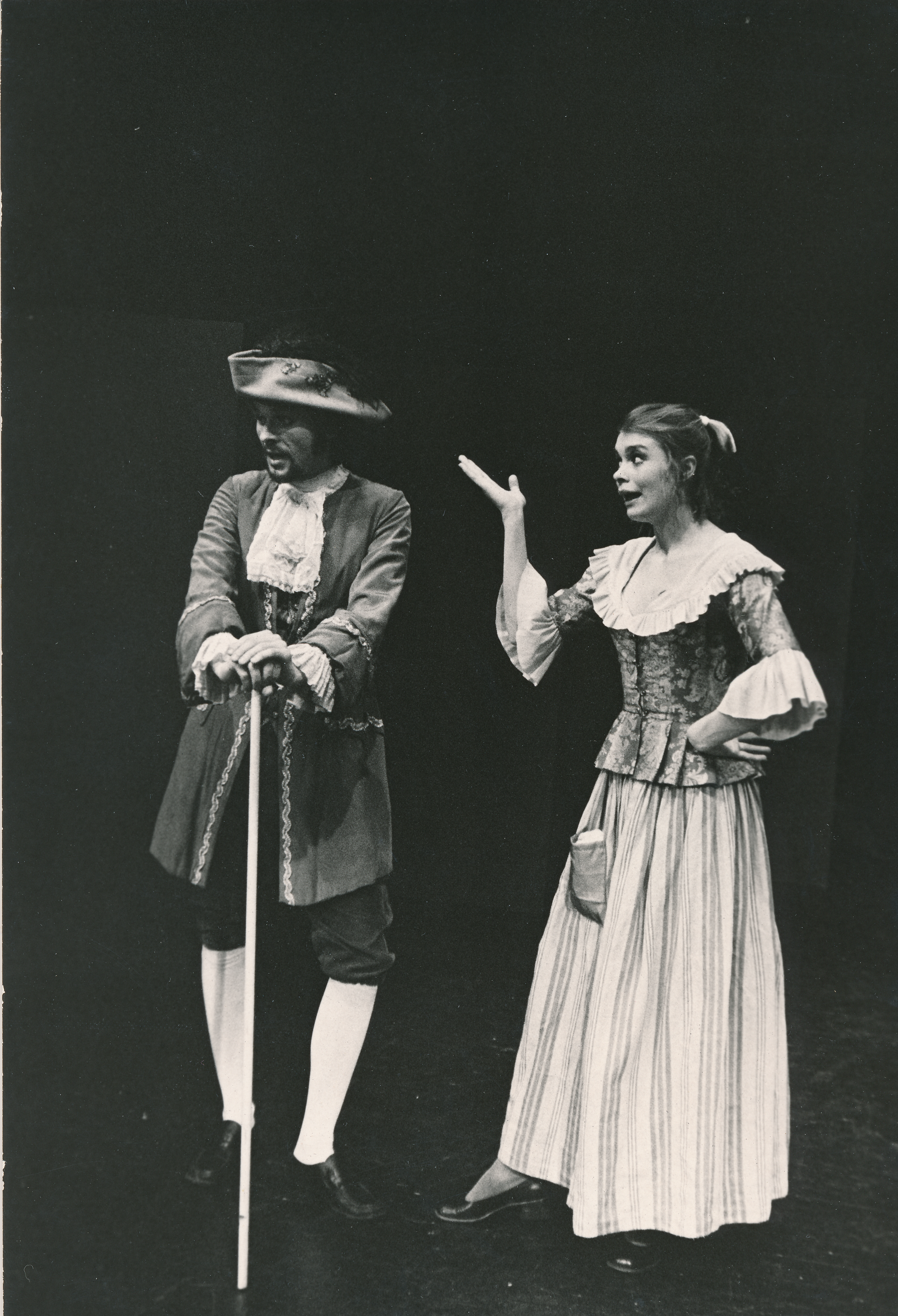 Fotografi fra Statens teaterskoles elevvisning med scener fra Tartuffe (1975)