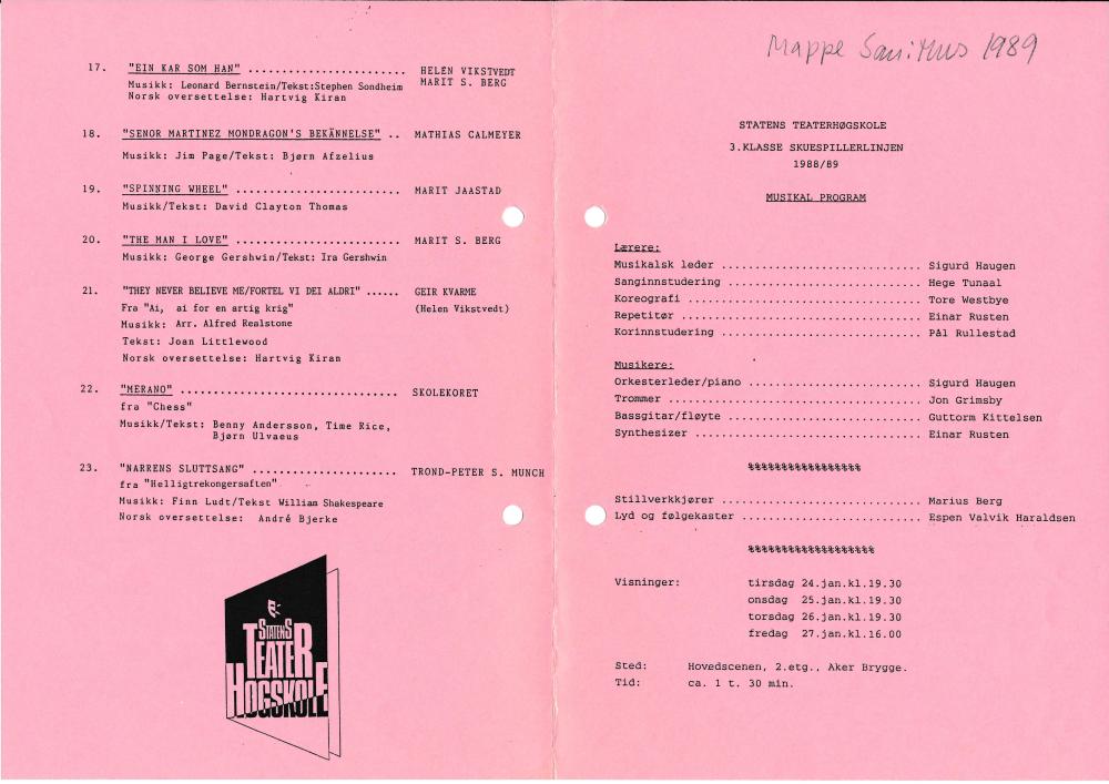 Program til Statens teaterhøgskoles studentproduksjon Hummer & Kanari (1989)